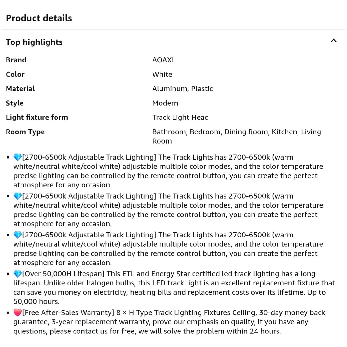 $ 65 obo 10W H Type Track Lighting Heads Can fine Control 2700K-6500K Stepless Dimming Led Track Lighting Fixtures Kitchen Task Wall Art Exhibition, Flicker Free CRI90+ 24°1000LM, White 8 Pack
