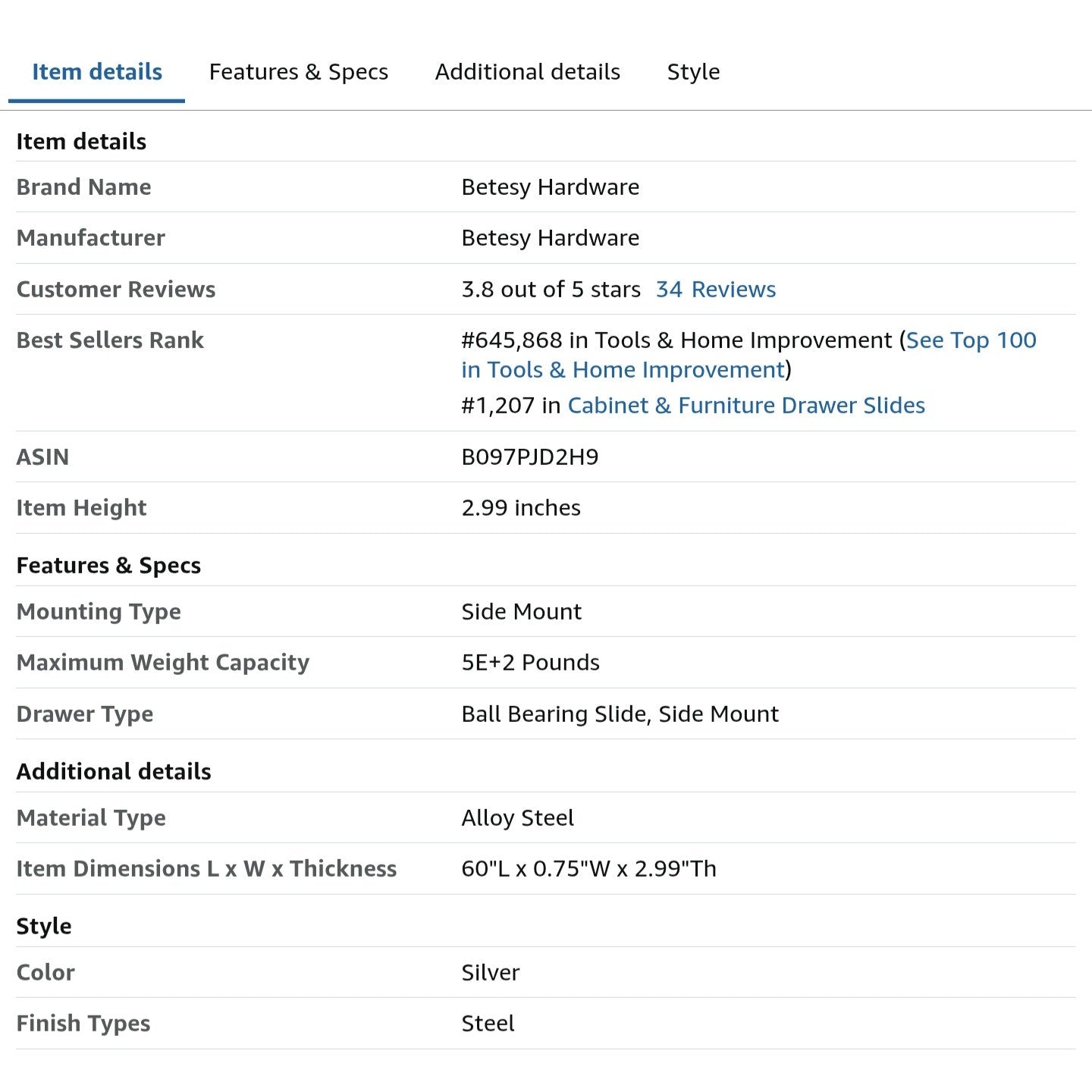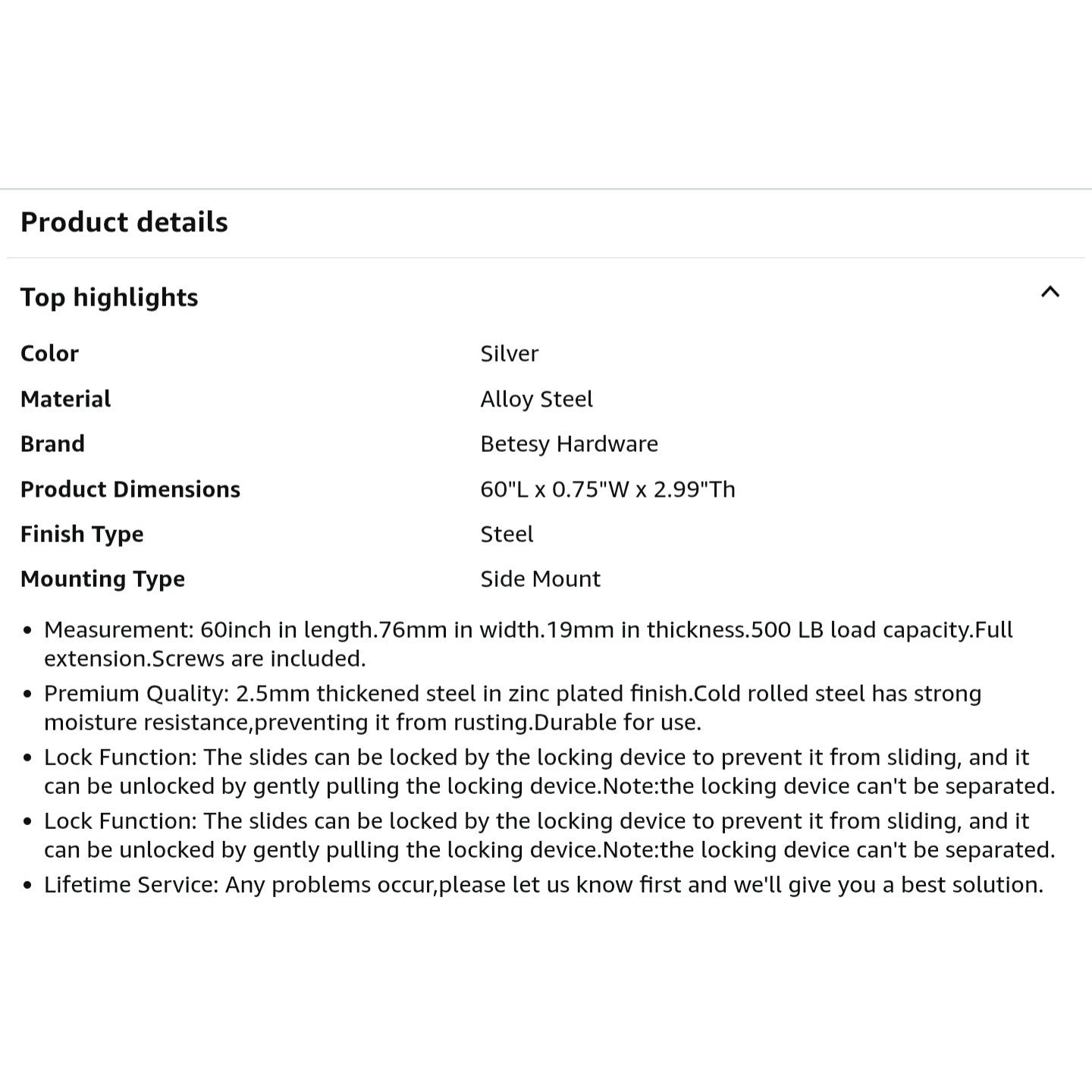 $ 120 obo 1 Pair of 60 Inch Heavy Duty Drawer Slides 500LB Full Extension Side Mount Ball Bearing Drawer Rails with Lock