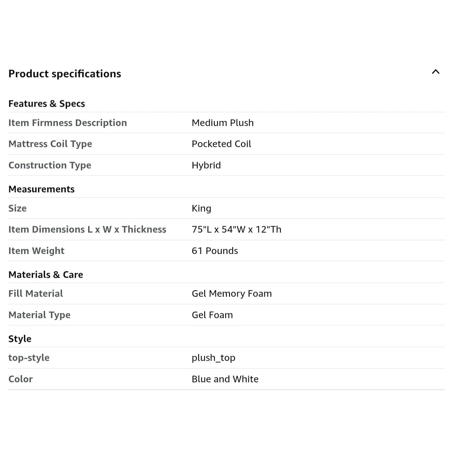 $ 140 obo 12 Inch King Hybrid Mattress in a Box - Individually Wrapped Coils & Gel Memory Foam for Back Support, Pressure Relief & Motion Isolation, CertiPUR-US Certified, Fiberglass-Free (76x80 Inches)