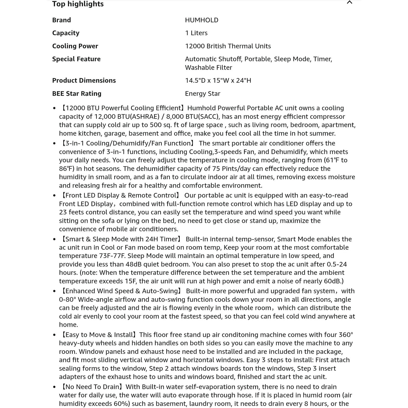 $ 245 obo 12000 BTU Portable Air Conditioners with Remote Control, 3-in-1 Free Standing Cooling AC Unit with Fan & Dehumidifier, Cools Room up to 500 sq.ft, Smart/Sleep Mode,Auto Swing