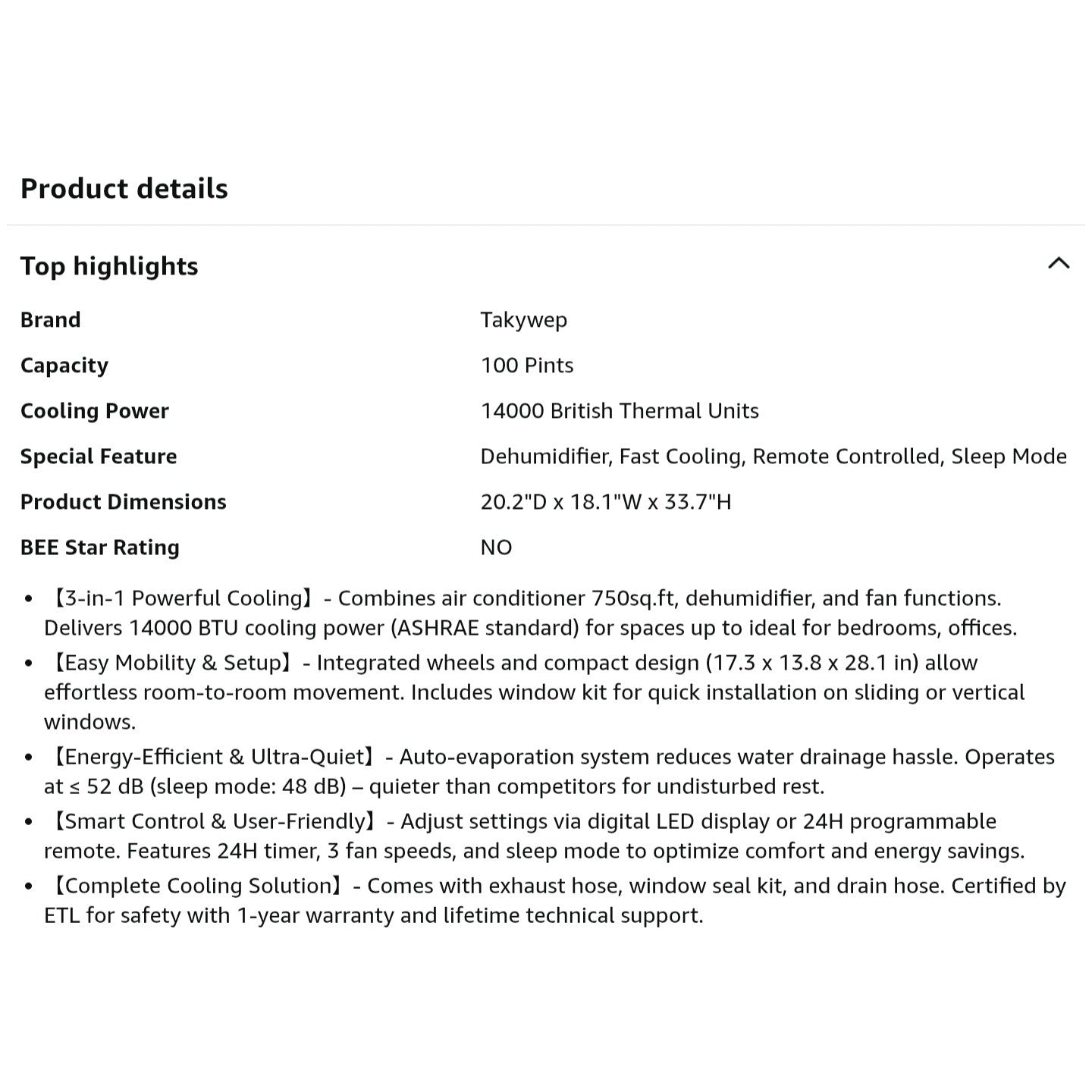 $ 250 obo 14,000 BTU Portable Air Conditioner - Cools 750 Sq.Ft, 3-in-1 Portable AC (ASHRAE) Dehumidifier Fan, Remote Control Window Kit, Quiet Portable Air Conditioners for Bedroom 48dB for Home, Office