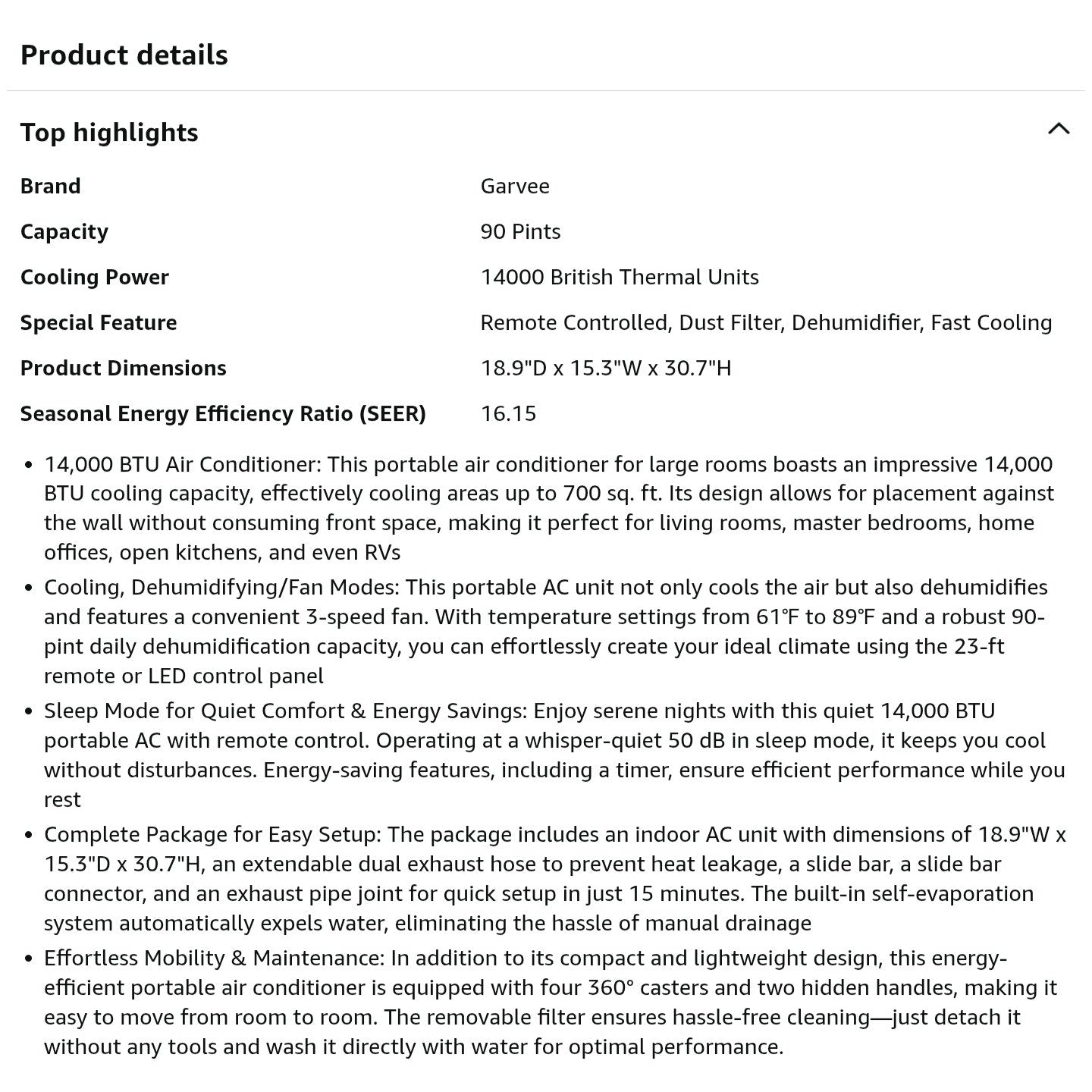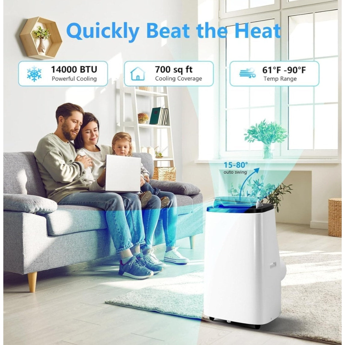 14000 BTU Portable Air Conditioner, with Remote Control 3-in-1 Ultra-Quiet Cooling, Dehumidifier & Fan for Rooms Up to 700 Sq. Ft. – Sleep Mode, 24H Timer & Windows Kit