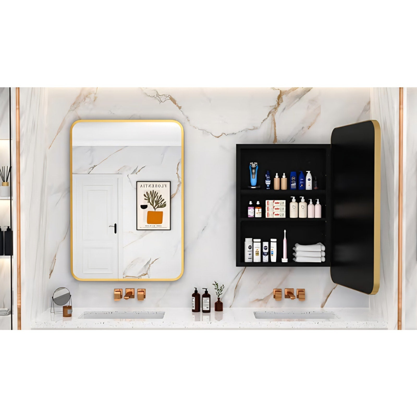 24x30 Inch Bathroom Medicine Cabinet with Mirror Gold Metal Framed Recessed or Surface Wall Mounted