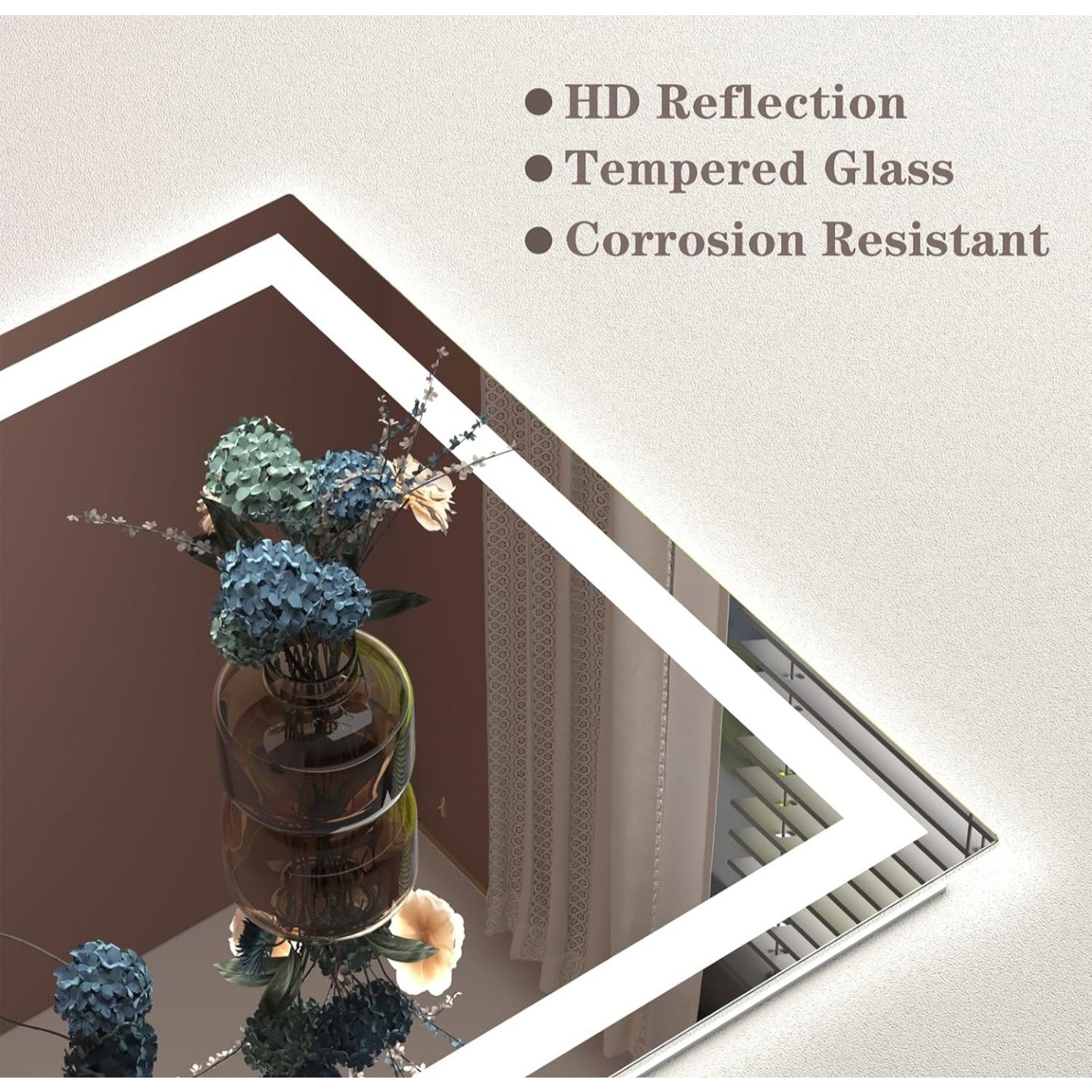 60x30 Lighted Bathroom Mirror for Wall, LED Illuminated Vanity Mirror with Lights, Dimmable, Anti