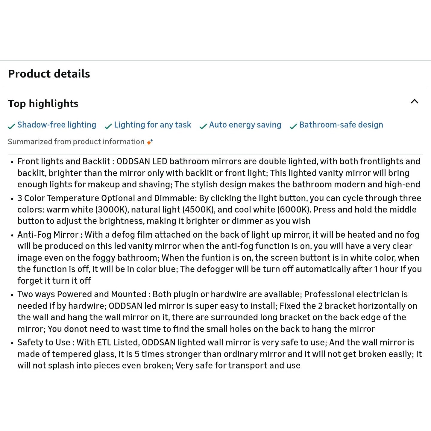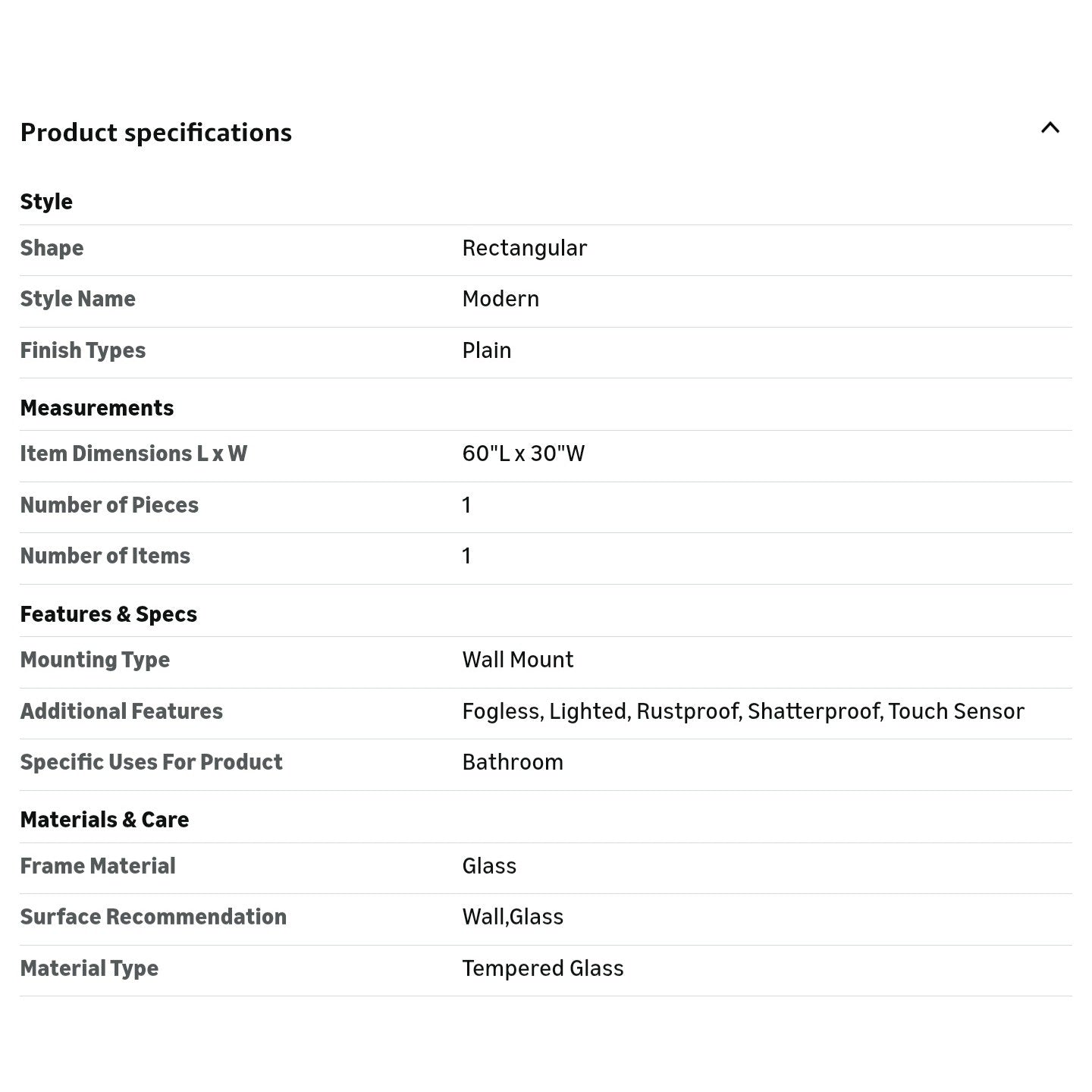 $ 190 OBO 60x30 Lighted Bathroom Mirror for Wall, LED Illuminated Vanity Mirror with Lights, Dimmable, Anti-Fog, ETL Listed (Backlit and Front Lighted)