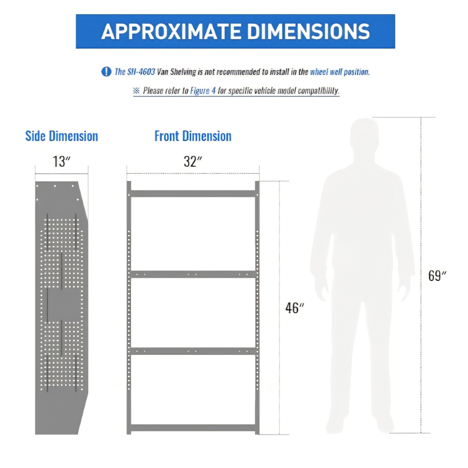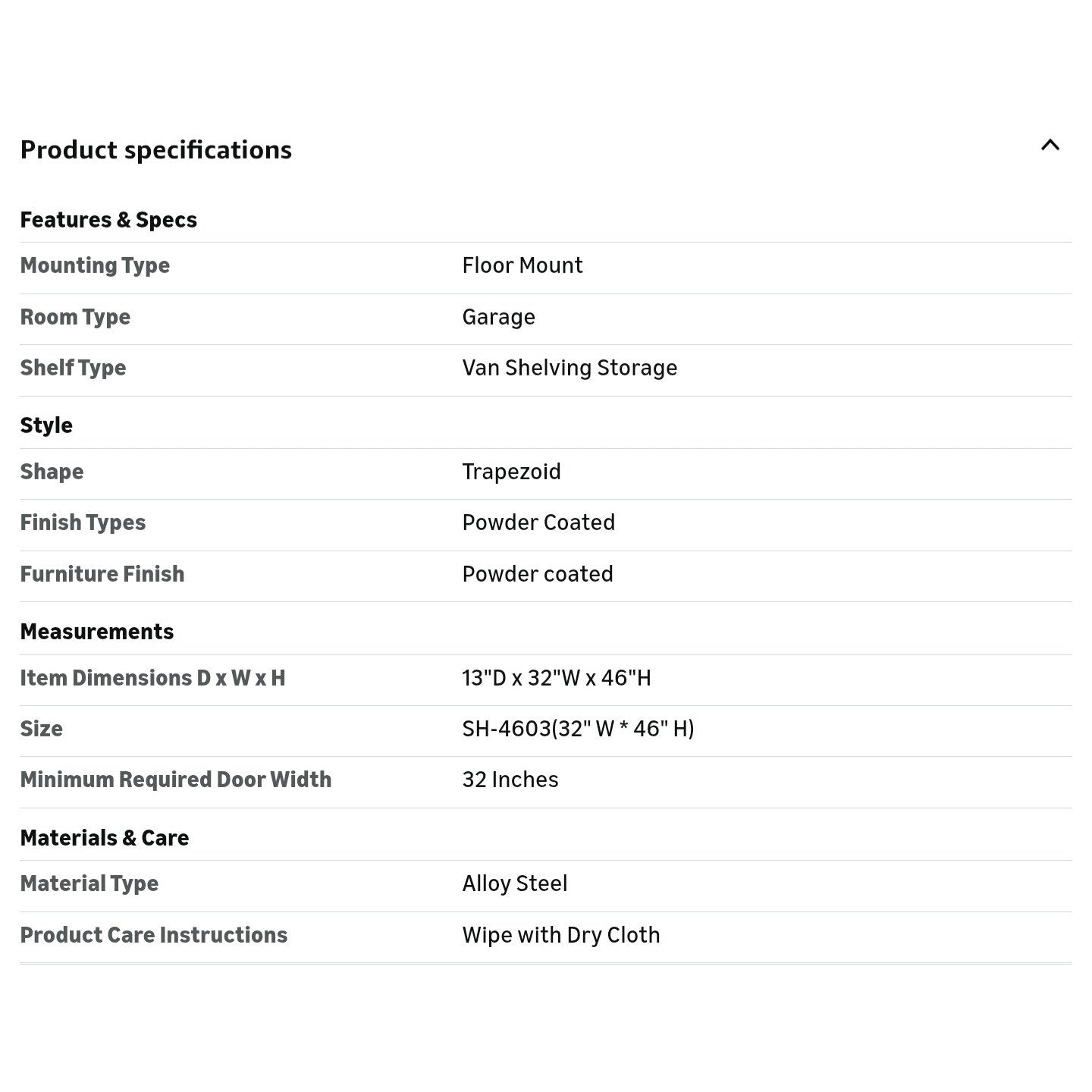 $ 190 OBO AA Products Inc. SH-4603 Steel Low/Mid/High Roof Van Shelving Storage System Fits Transit, GM, NV, Promaster and Sprinter, Contoured Shelving Unit, 32" W x 46" H x 13" D