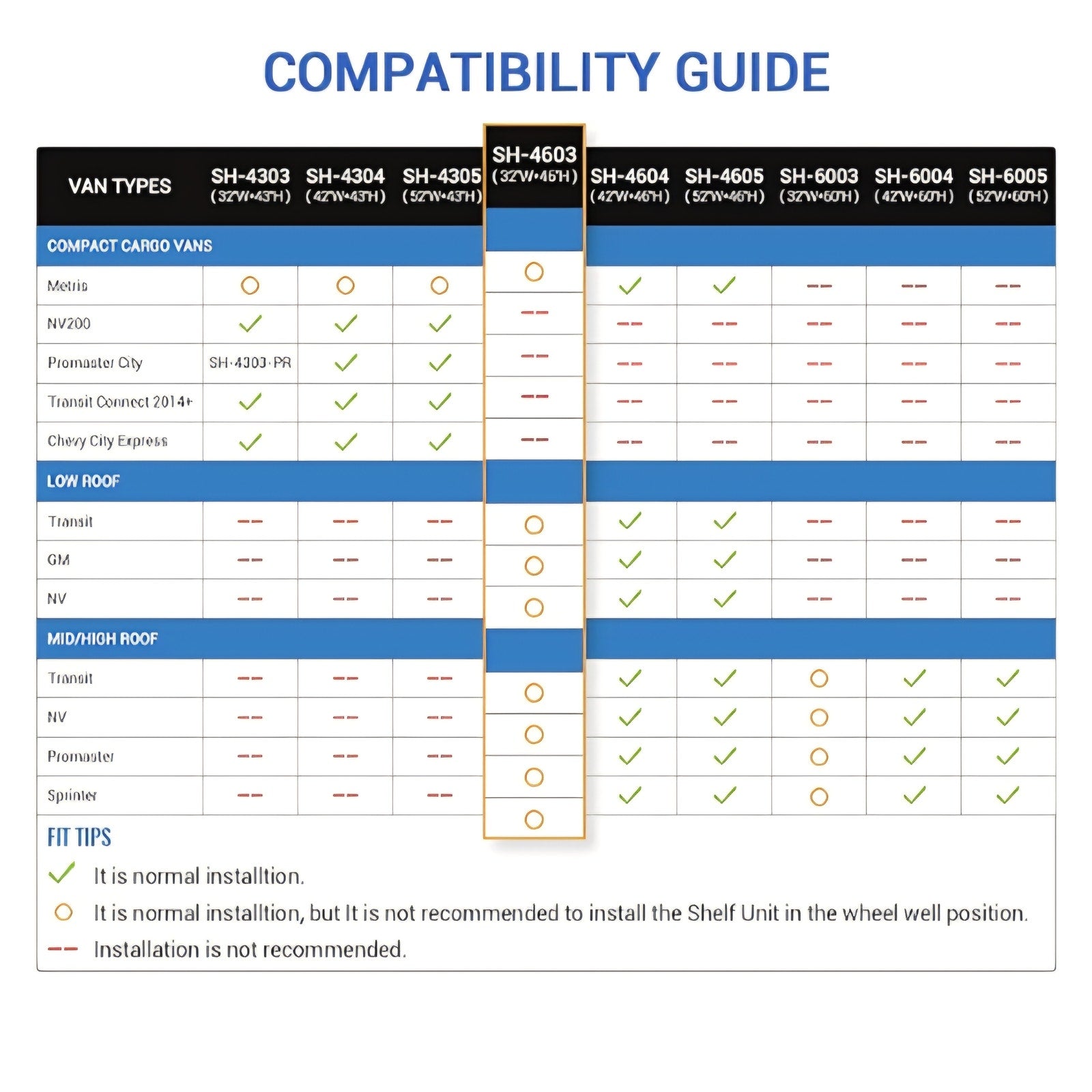 AA Products Inc. SH-4603 Steel Low/Mid/High Roof Van Shelving Storage System Fits