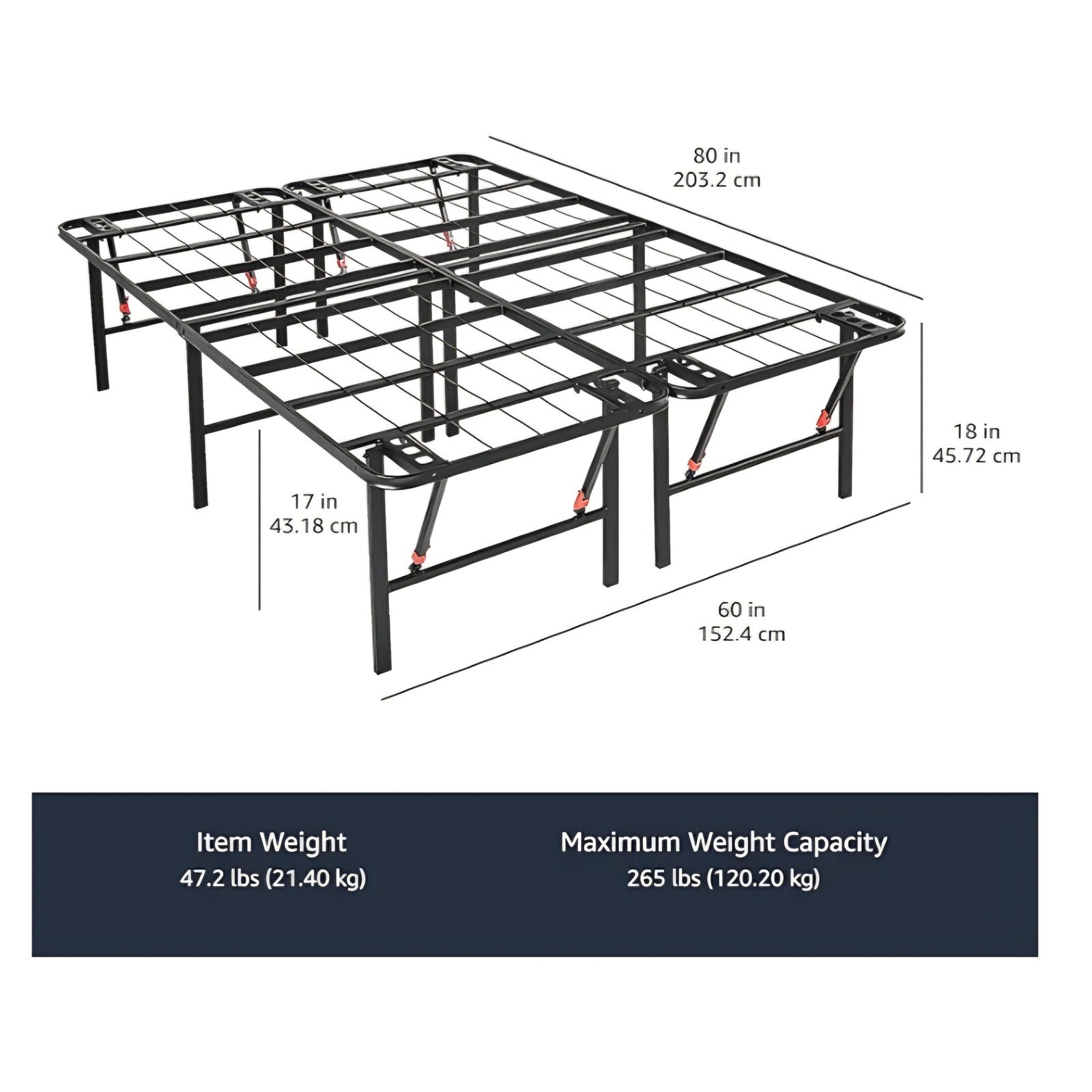 Amazon Basics Bed Frame with Storage, Foldable Metal Platform, Queen