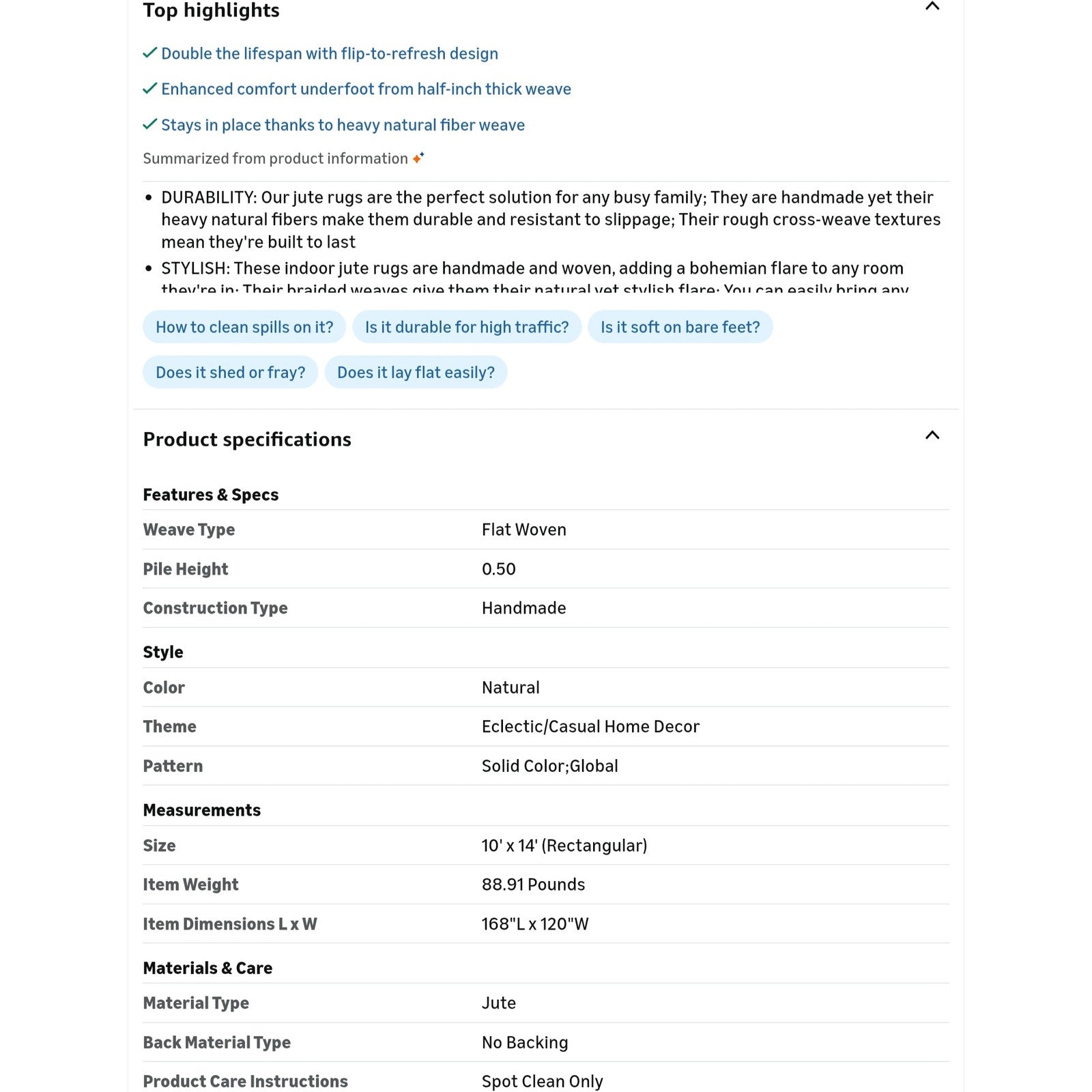 $ 330 obo JONATHAN Y Pata Hand Woven Chunky Jute Natural Indoor Area Rug, 10x14, Bohemian, Rustic, Cottage, Easy-Cleaning for Living Room, Bedroom, Kitchen, Non-Shedding (NRF102A-14)