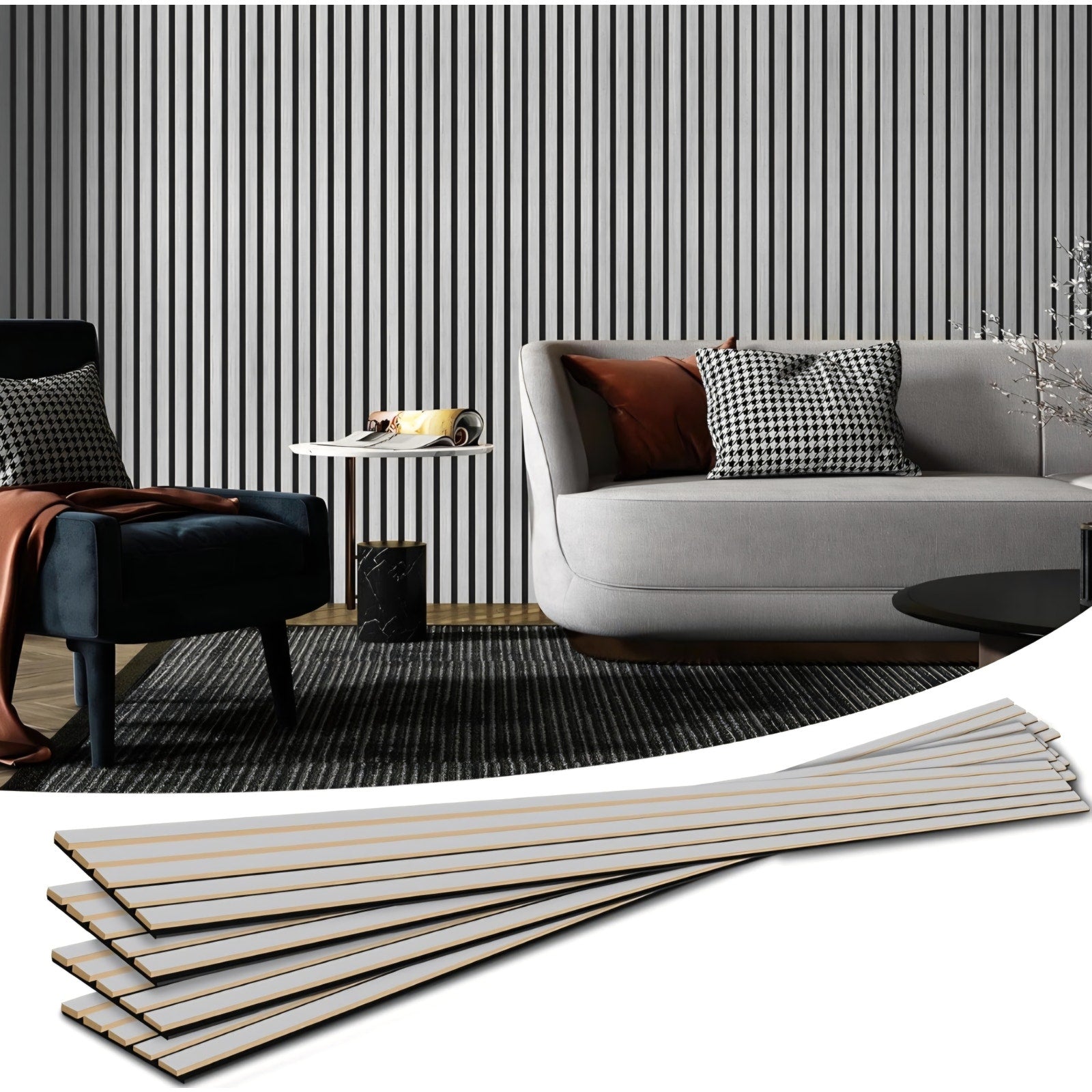 Art3d 4-Piece Wood Slat Acoustic Panels for Stylish Decor and Noise Reduction, Brushd silver