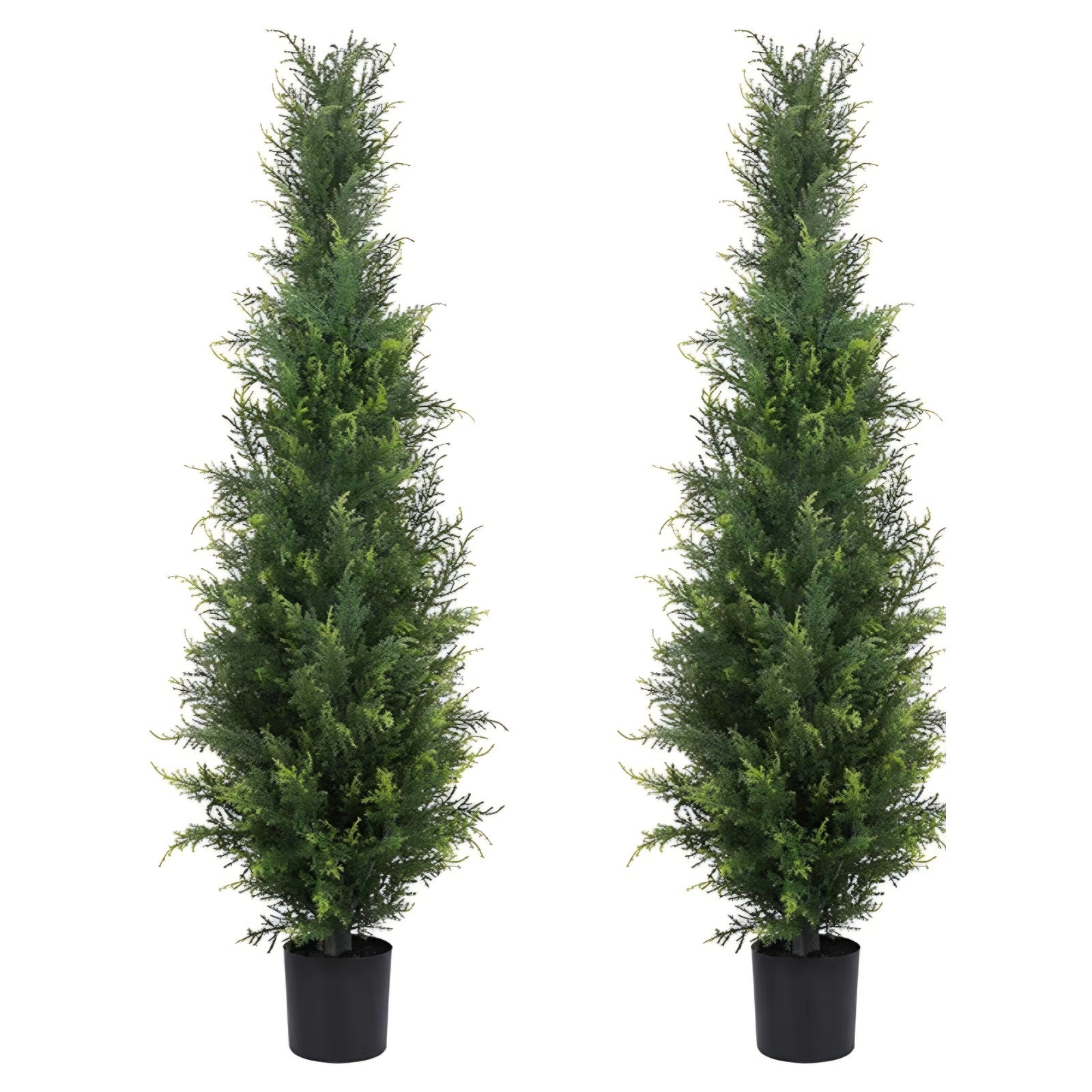 $ 120 OBO Artificial Cedar Topiary Trees 4FT Potted Fake Cypress Trees Faux Evergreen Plants for Home Porch Garden Decor Set of 2