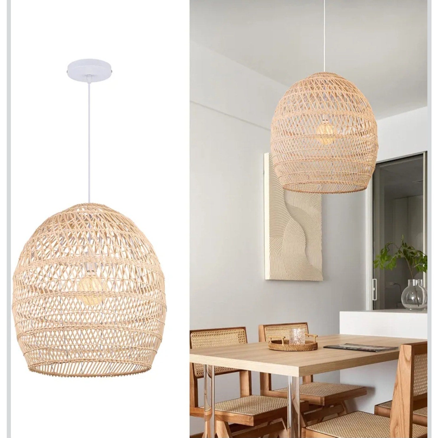 Arturesthome Boho Wicker Chandelier,W 15.7"*H 18" Rustic Rattan Basket Pendant Light Fixture Coasta