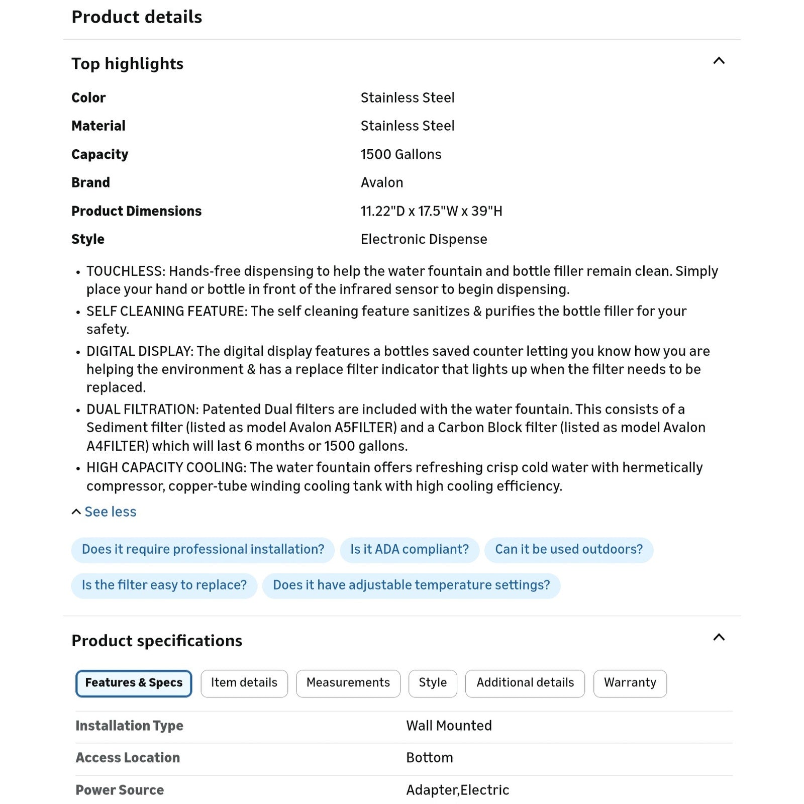 $ 630 OBO Avalon Wall Mounted Water Fountain with Bottle Filling Station, High Capacity Cooling, Sensor Dispensing, Self Cleaning, Digital Bottle Counter Display, Dual Filtration, ADA Compliant