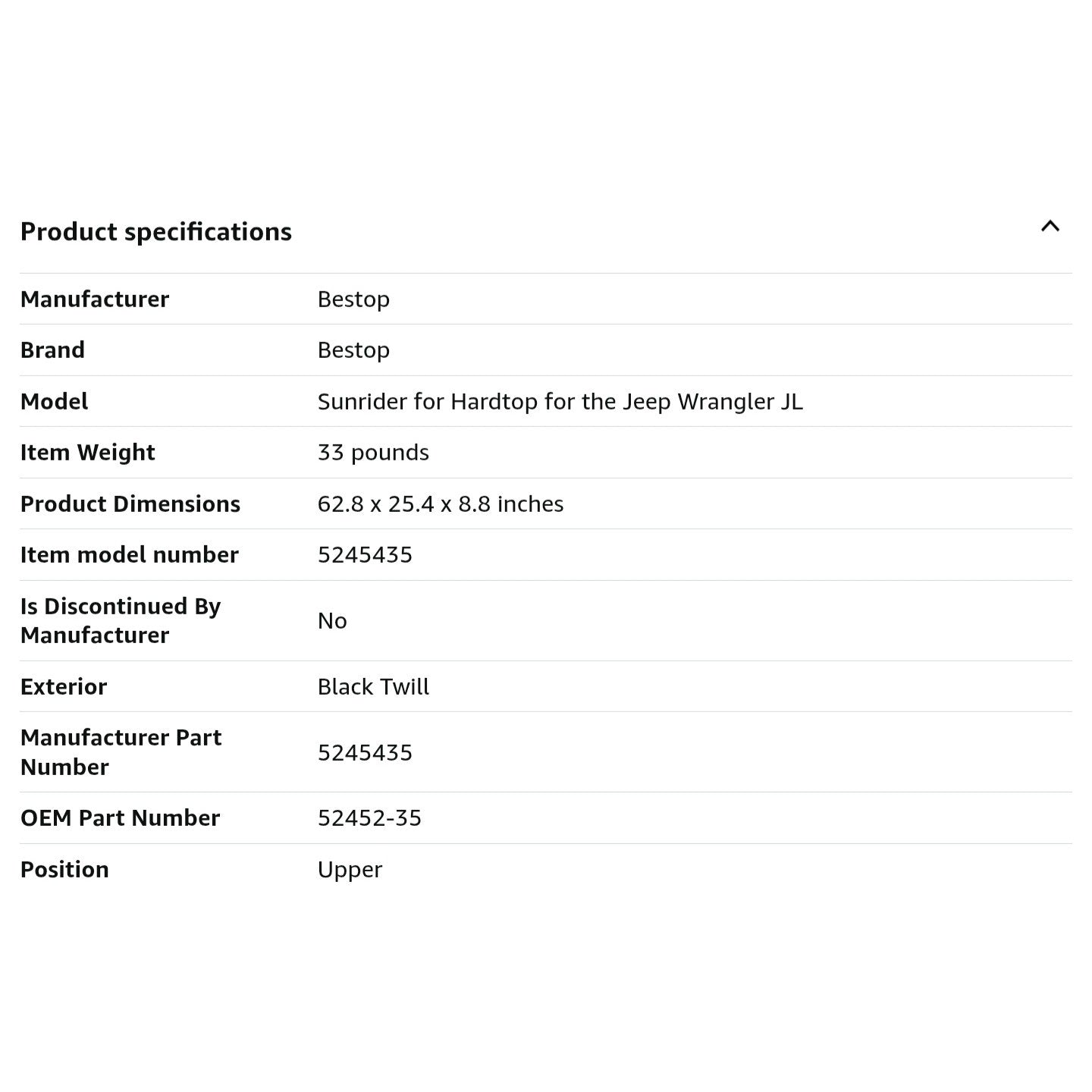 $ 560 OBO Bestop Sunrider for Hardtop - Jeep '20-Current Gladiator / '18-Current Wrangler JL (Black Diamond)
