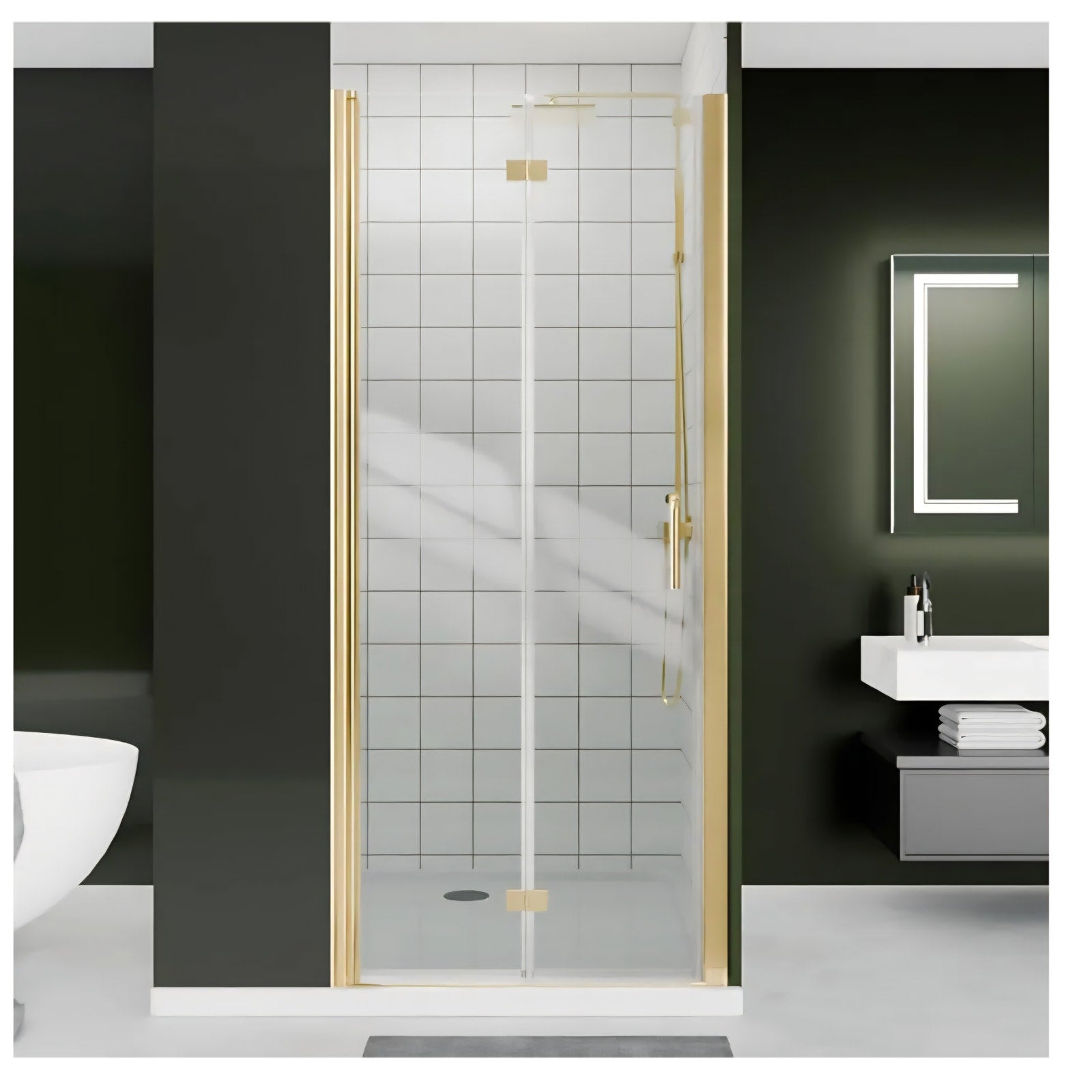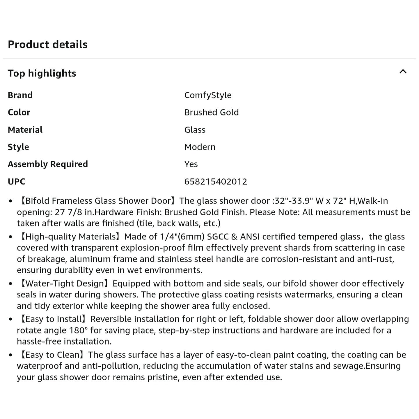 $ 220 obo Bifold Shower Door, 32"-33.9" W x 72" H, 1/4" Tempered Glass Shower Door, Foldable Shower Glass Door, Adjustable, Brushed Gold Finish