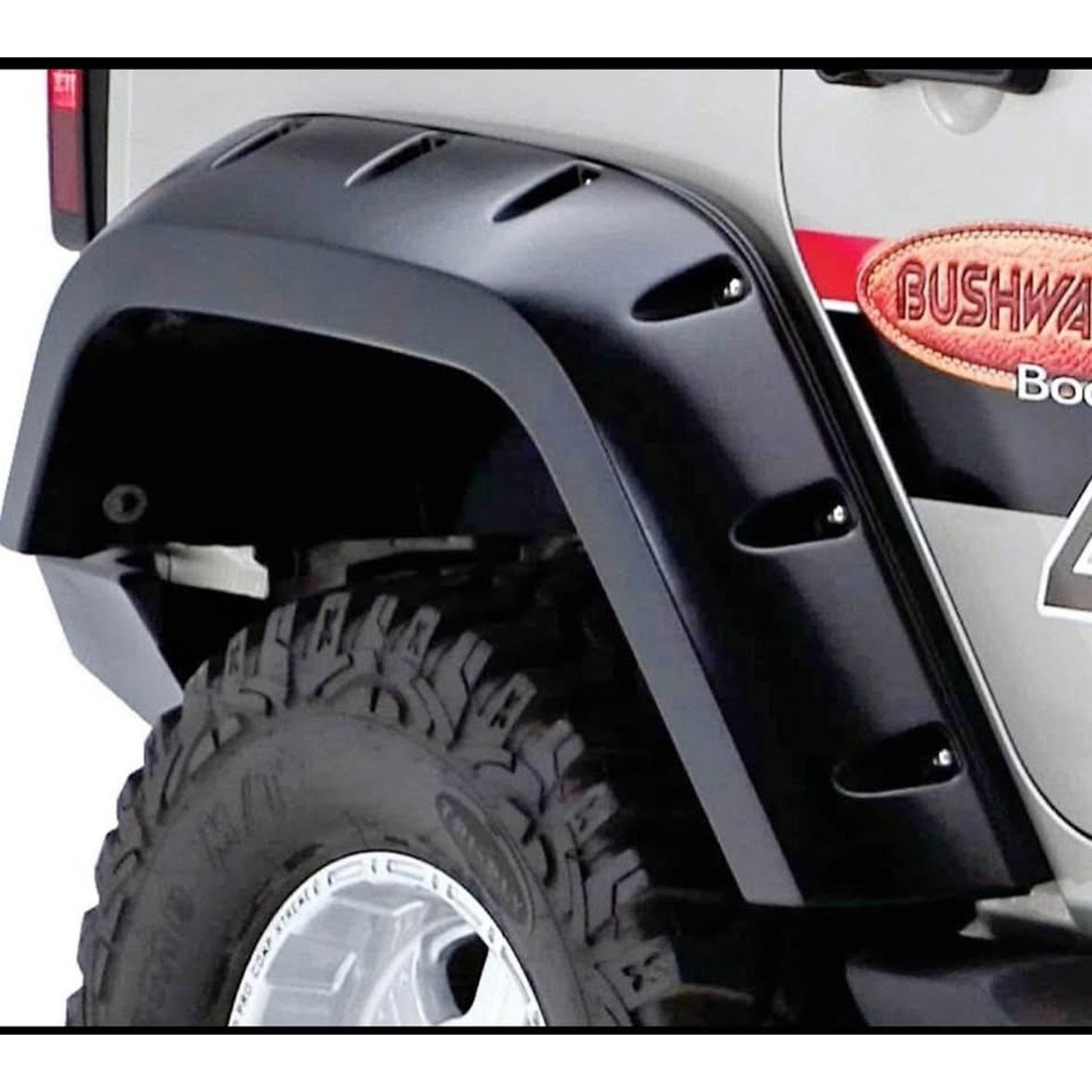 Bushwacker Max Coverage Pocket/Rivet Style Front & Rear Fender Flares | 4-Piece Set, Black, Smooth F