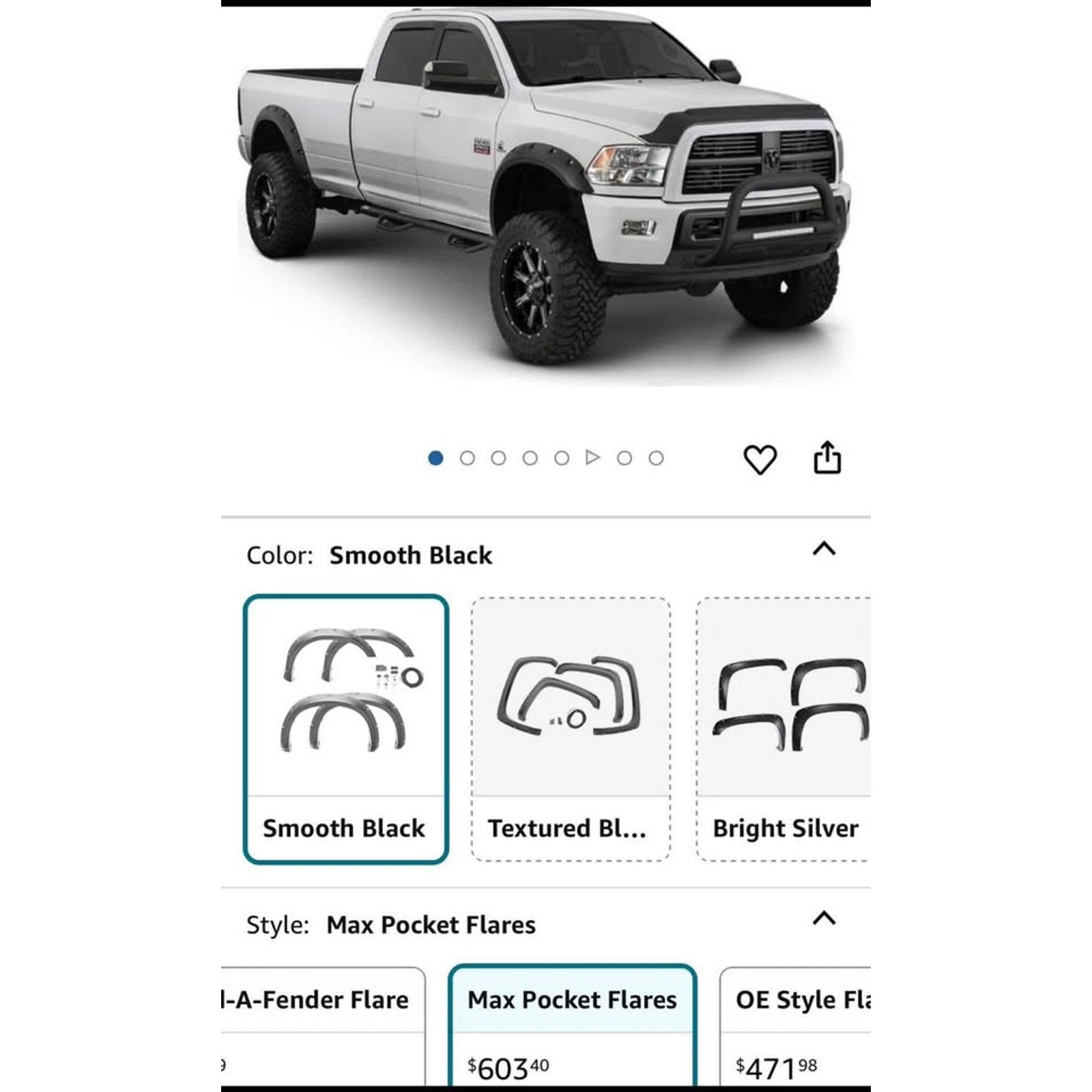 $340 obo Bushwacker Max Coverage Pocket/Rivet Style Front & Rear Fender Flares | 4-Piece Set, Black, Smooth Finish | 50921-02 | Fits 2010-2018 Dodge Ram 2500, 3500 (Includes Dually)