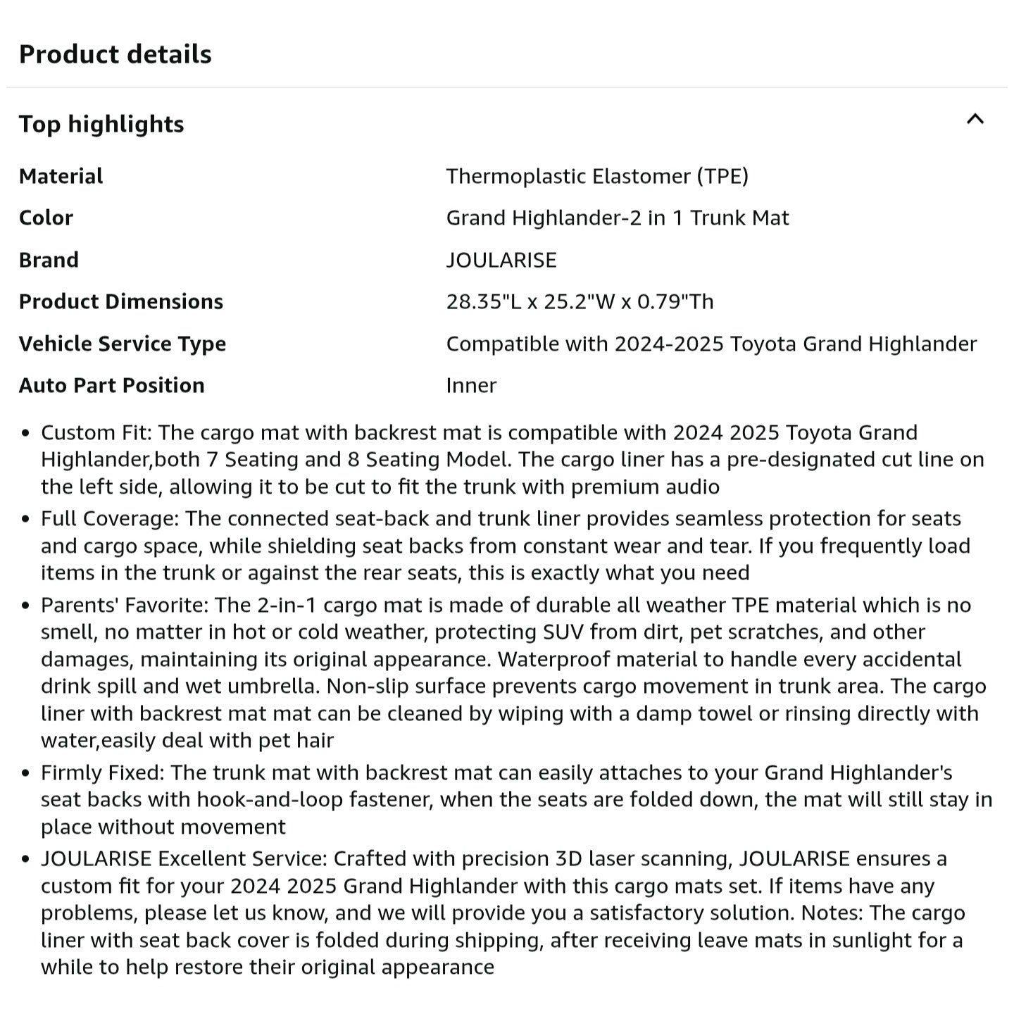 Cargo Mat with Backrest Mat 2-in-1 for 2024 2025 Toyota Grand Highlander Car Mat Accessories,
