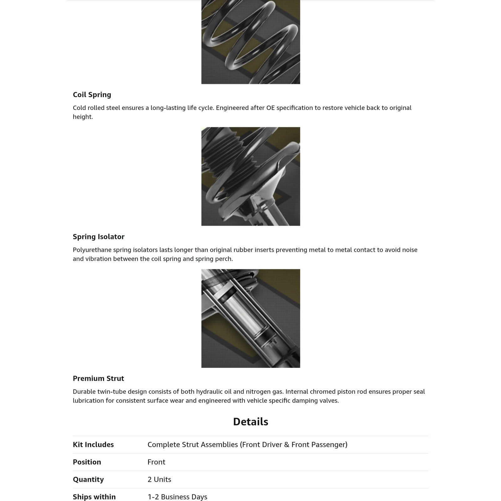 $ 110 obo COMPLETESTRUTS Front Quick Complete Strut Assemblies with Coil Springs Replacement for 2011-2019 Toyota Sienna FWD - Set of 2