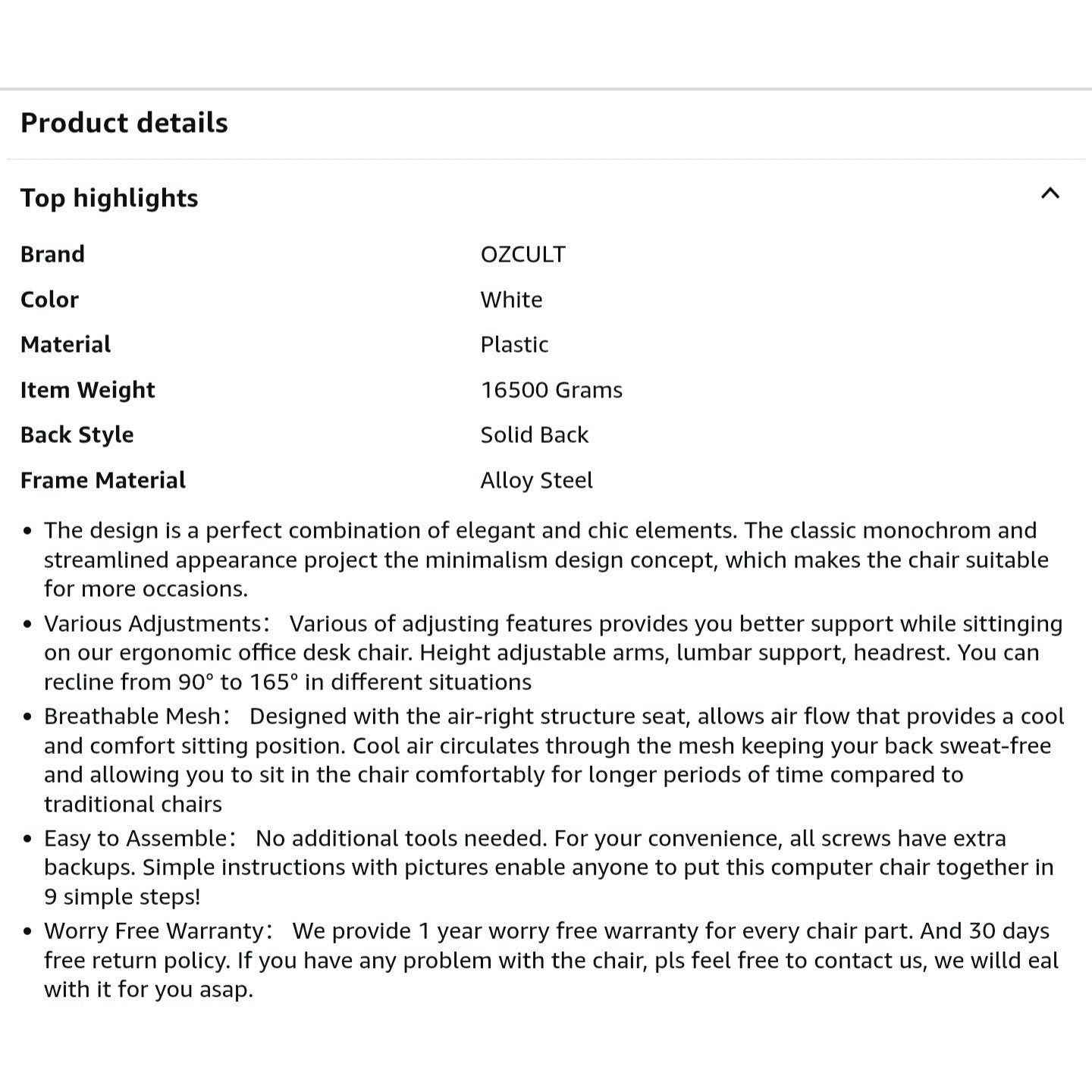 $ 380 obo Desk Chairs Executive Office Chair Adjustable headrest and Lumbar Support Swivel Computer Chair Breathable Mesh Back Tilt Lock Function Pull-Out Footstool (Color : White)
