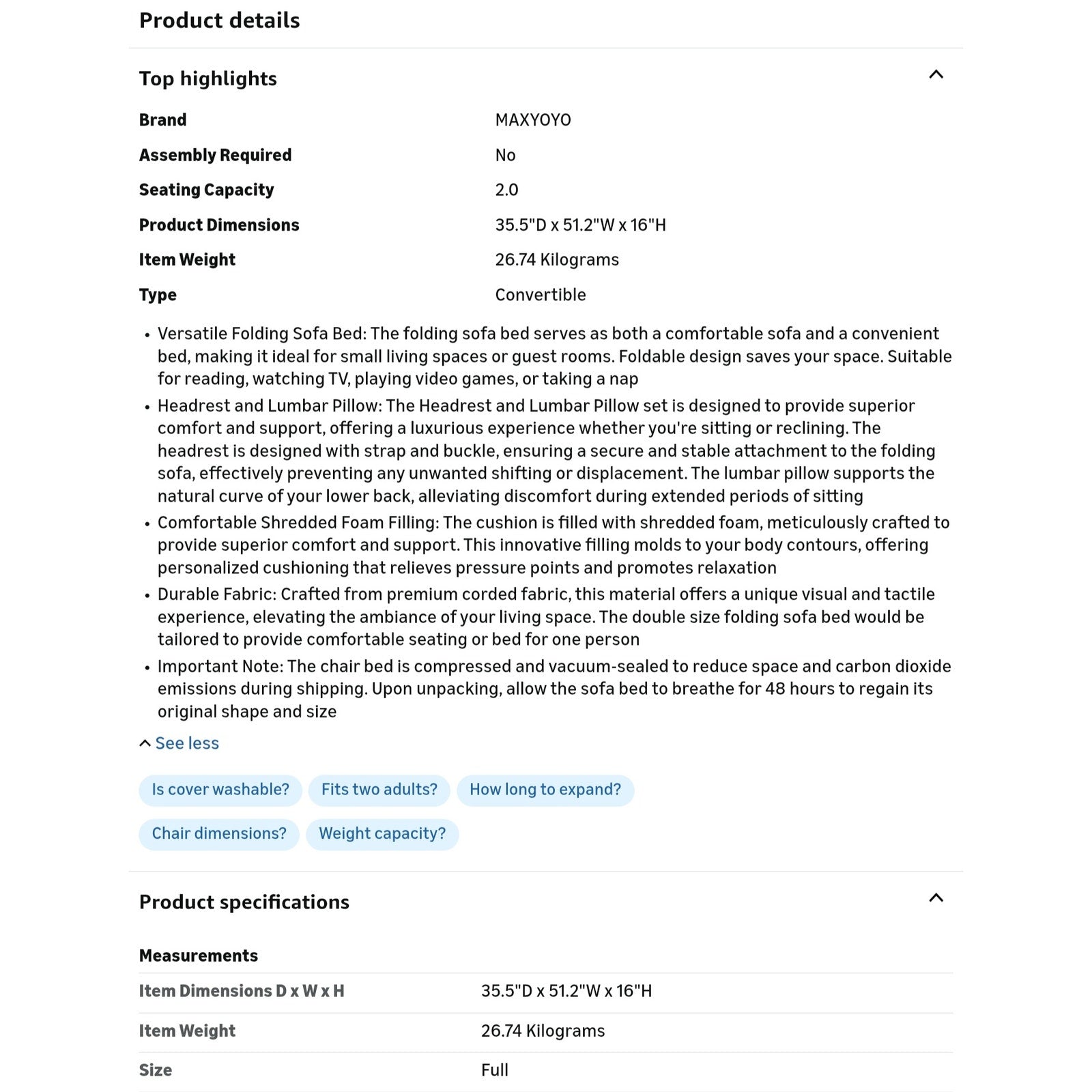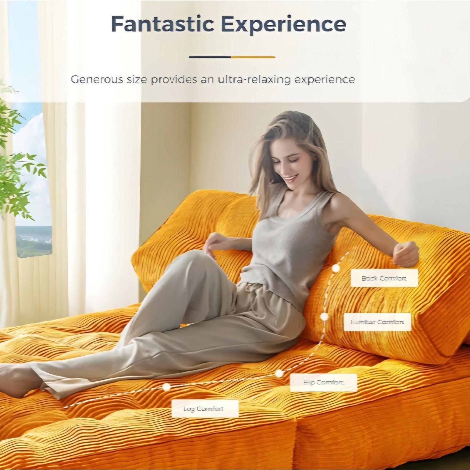 $ 140 obo MAXYOYO Folding Sofa Bed, Convertible Sleeper Chair with Pillow Foldable Matress with Back Support, Portable Fold Out Chair Bed Comfy Floor Sofa Lounge for Living Room Bedroom, Orange Double