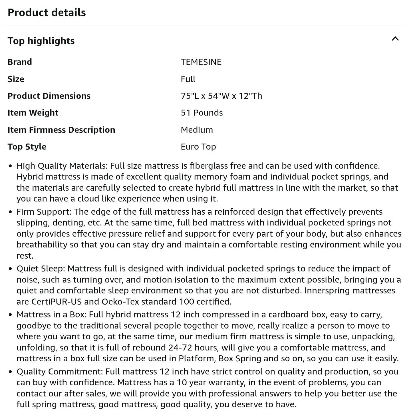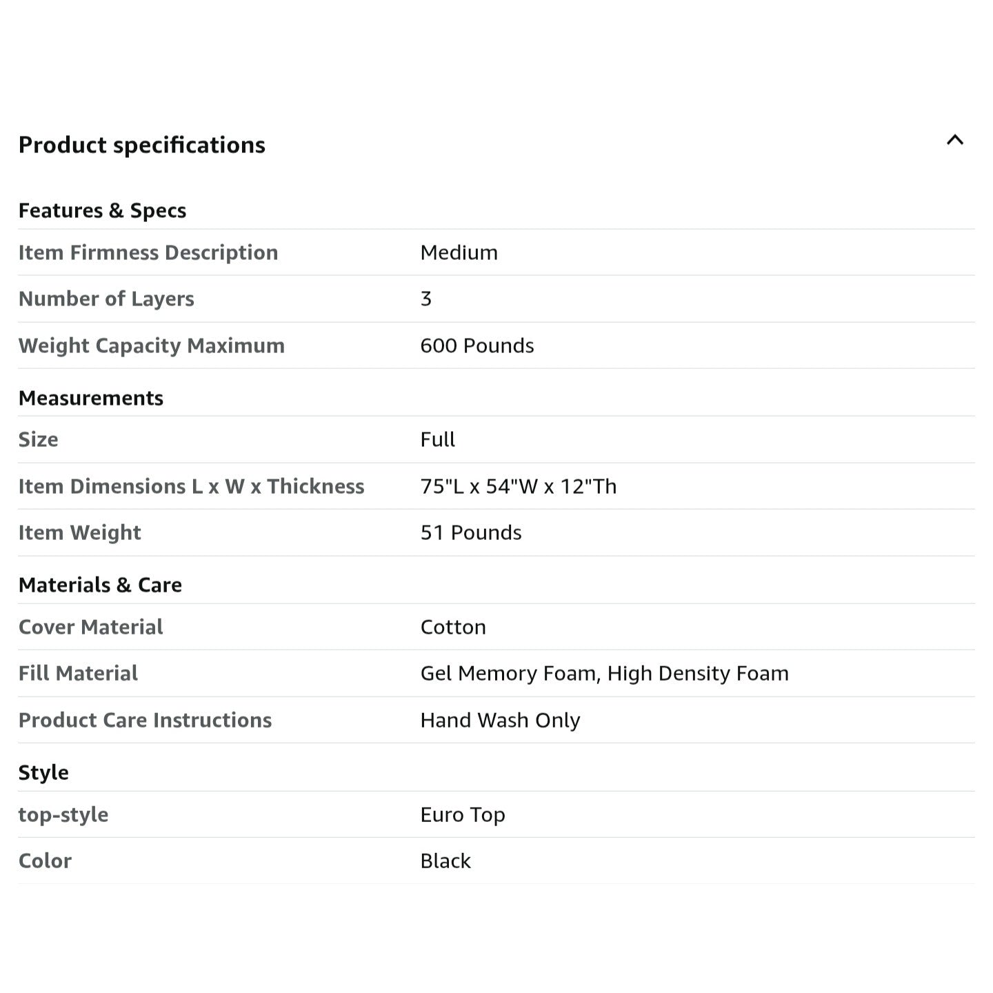 $ 185 obo Full Size Mattress, 12 Inch Hybrid Mattress in a Box with Individual Pocket Spring, Gel Memory Foam and Euro Top, Medium Firm Feel with Motion Isolation, Pressure Relief, Edge Support, Black