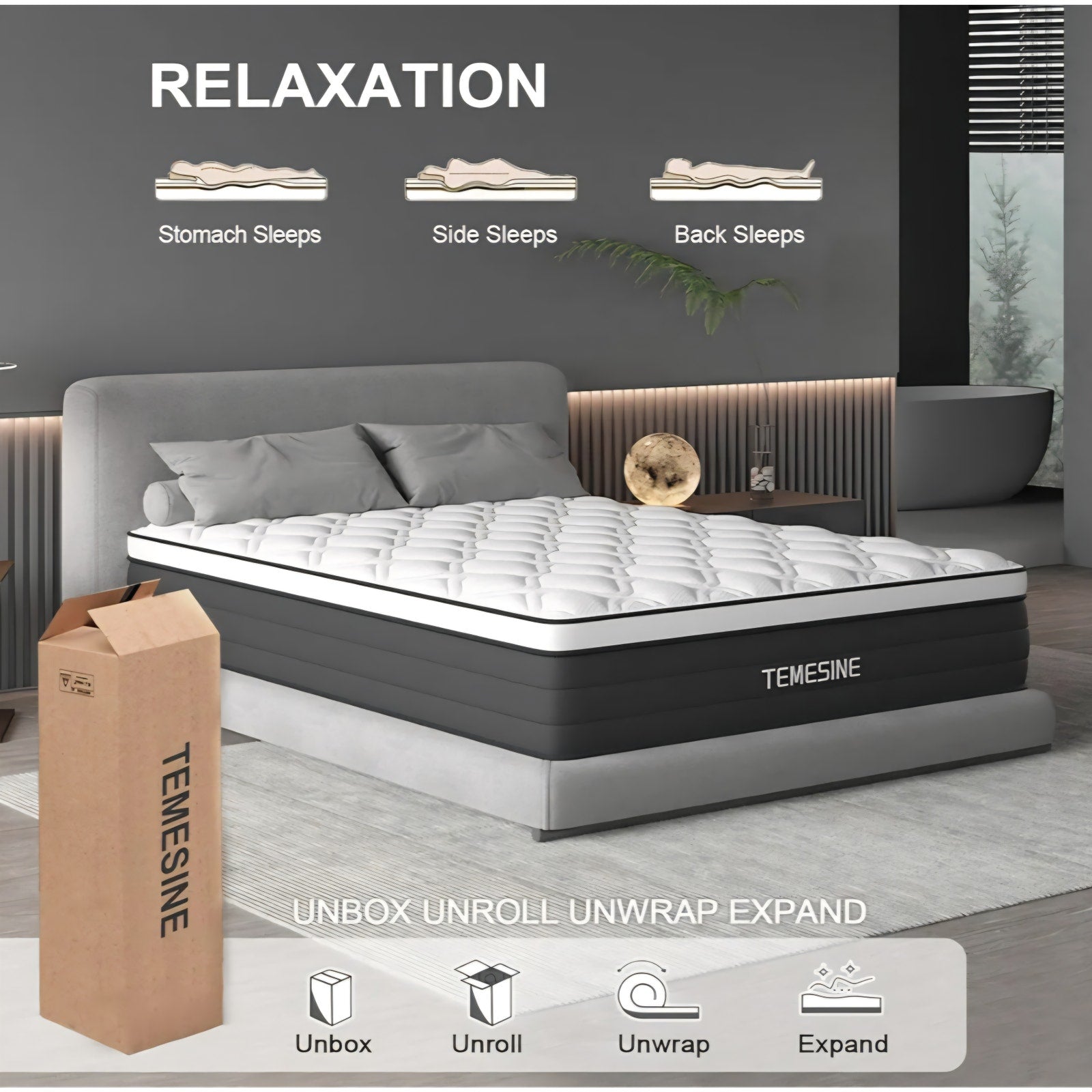 Full Size Mattress, 12 Inch Hybrid Mattress in a Box with Individual Pocket Spring, Gel Memory Foam