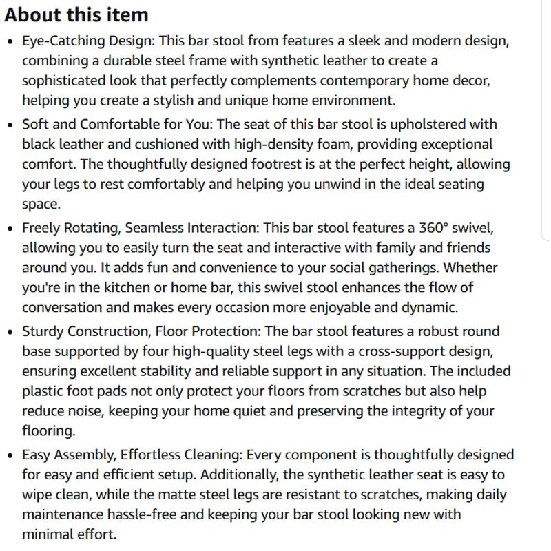 Garvee Swivel Bar Stools Set of 4, 24.4 in, with Upholstered PU Leather Cushion, Metal, Black