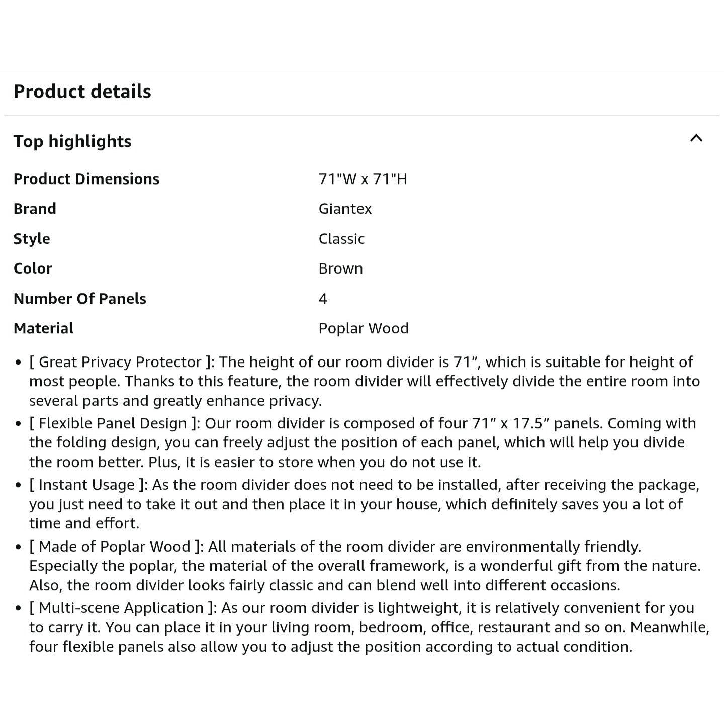 $ 65 obo Giantex 4 Panel Room Divider, 6 Ft Tall Handmade Rattan Room Dividers, Portable Wood Room Separators Divider, Freestanding Folding Screen for Home Office