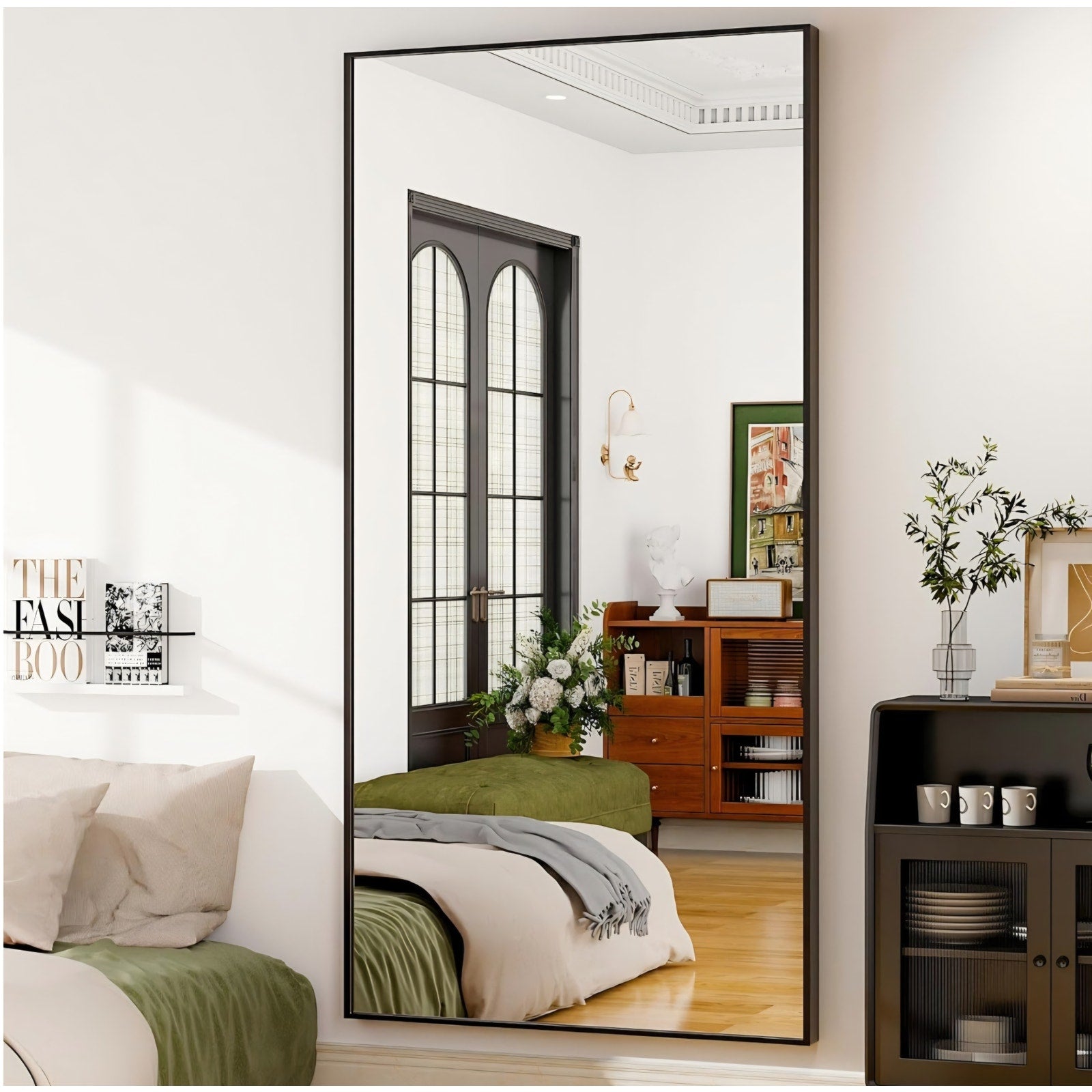 $ 85 OBO GLSLAND 76"x34" Full Length Mirror Extra Large Hanging or Leaning Rectangle Mirror Aluminum Alloy Thin Frame Bedroom Floor Dressing,Black