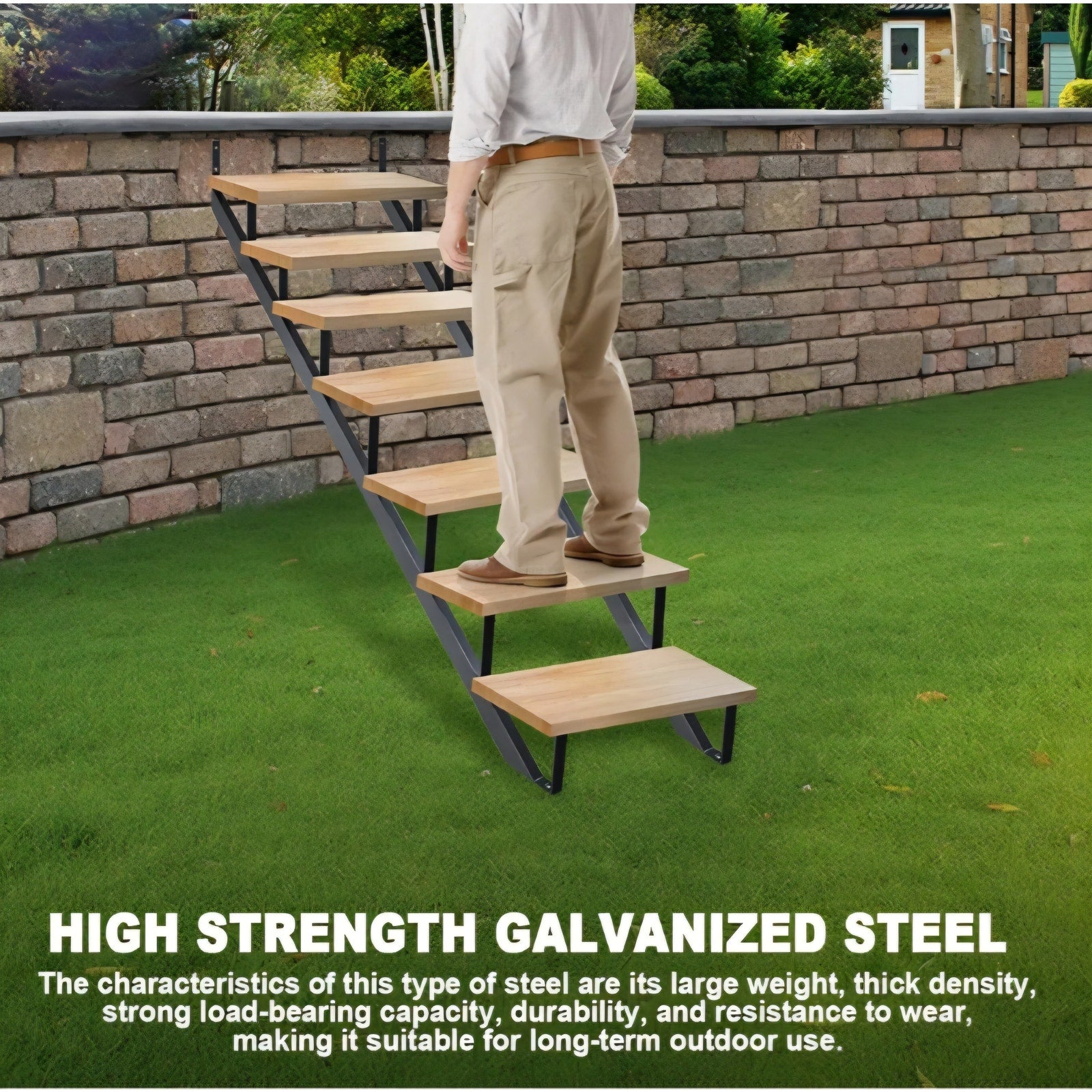 Heavy Duty Steel Stair Riser 7 Step, Metal Stair Stringer for Deck Height 58 inches, Stair Step