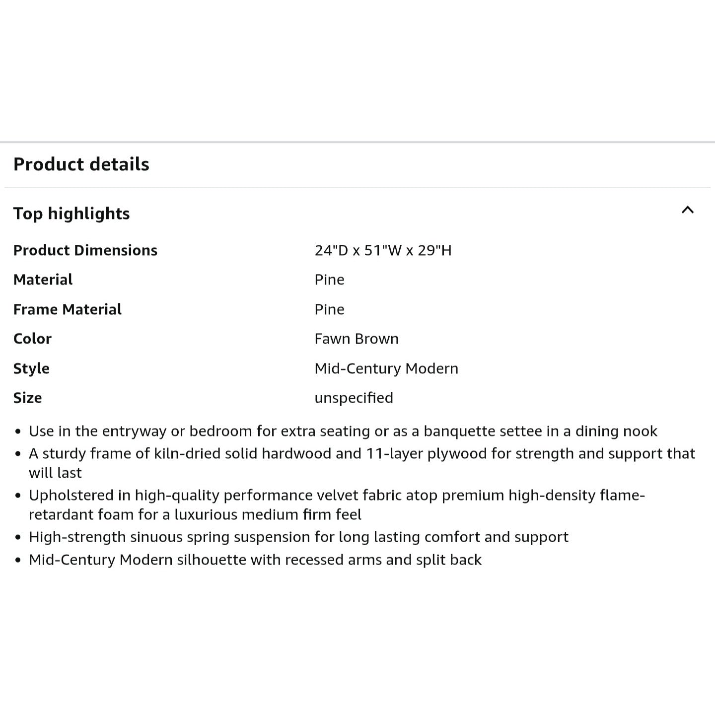 $ 400 obo Jennifer Taylor Home Jared Roll Arm Tufted Bench Settee with Back, Fawn Brown Performance Velvet