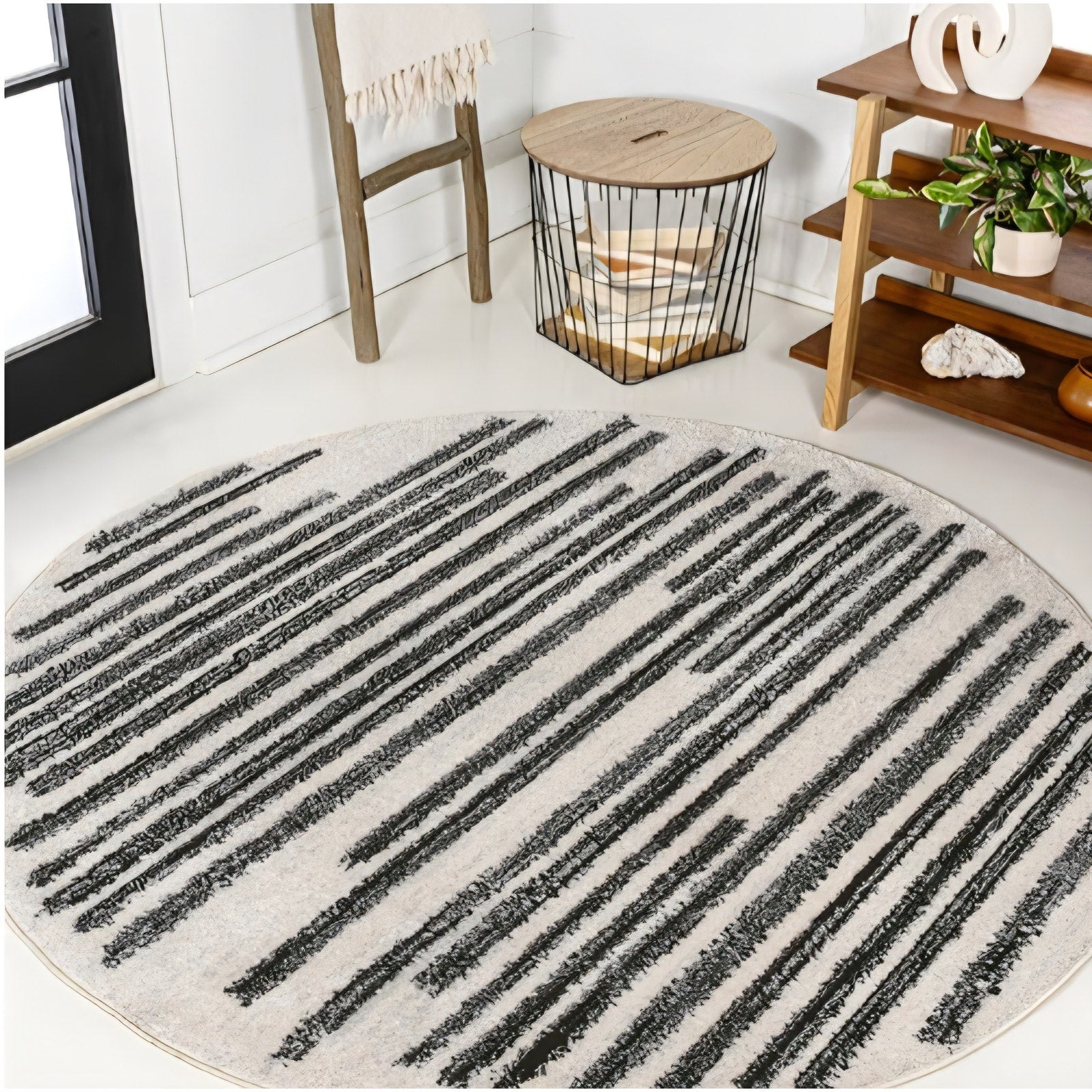 $ 80 obo JONATHAN Y Khalil Modern Berber Stripe Cream/Black 7' Round Indoor Area Rug, Contemporary, Bohemian, Easy-Cleaning for Living Room, Bedroom, Kitchen, Pet Friendly, Non-Shedding (MOH207A-7R)