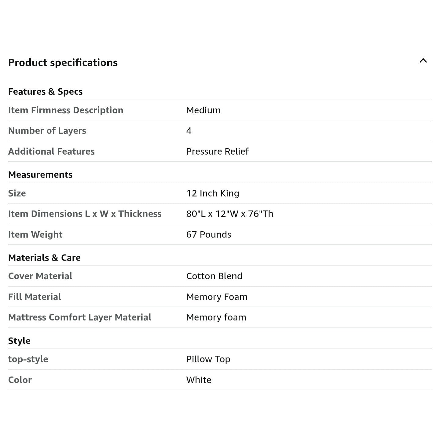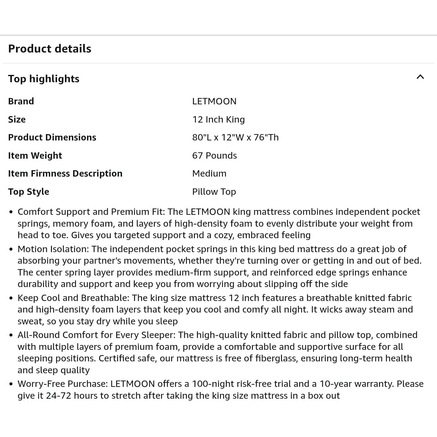 $ 155 obo King Mattress, 12 Inch Hybrid King Size Mattress, Medium Firm Memory Foam and Pocket Springs, 3 Coils Strong Edge Support, Pressure Relief, Bed in Box