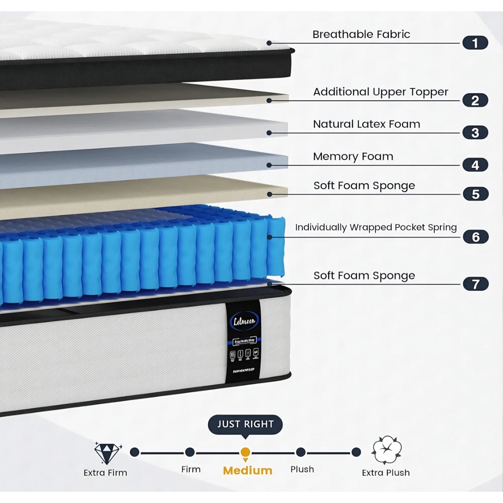 King Mattress, 12 Inch Hybrid King Size Mattress, Medium Firm Memory Foam and Pocket Springs,