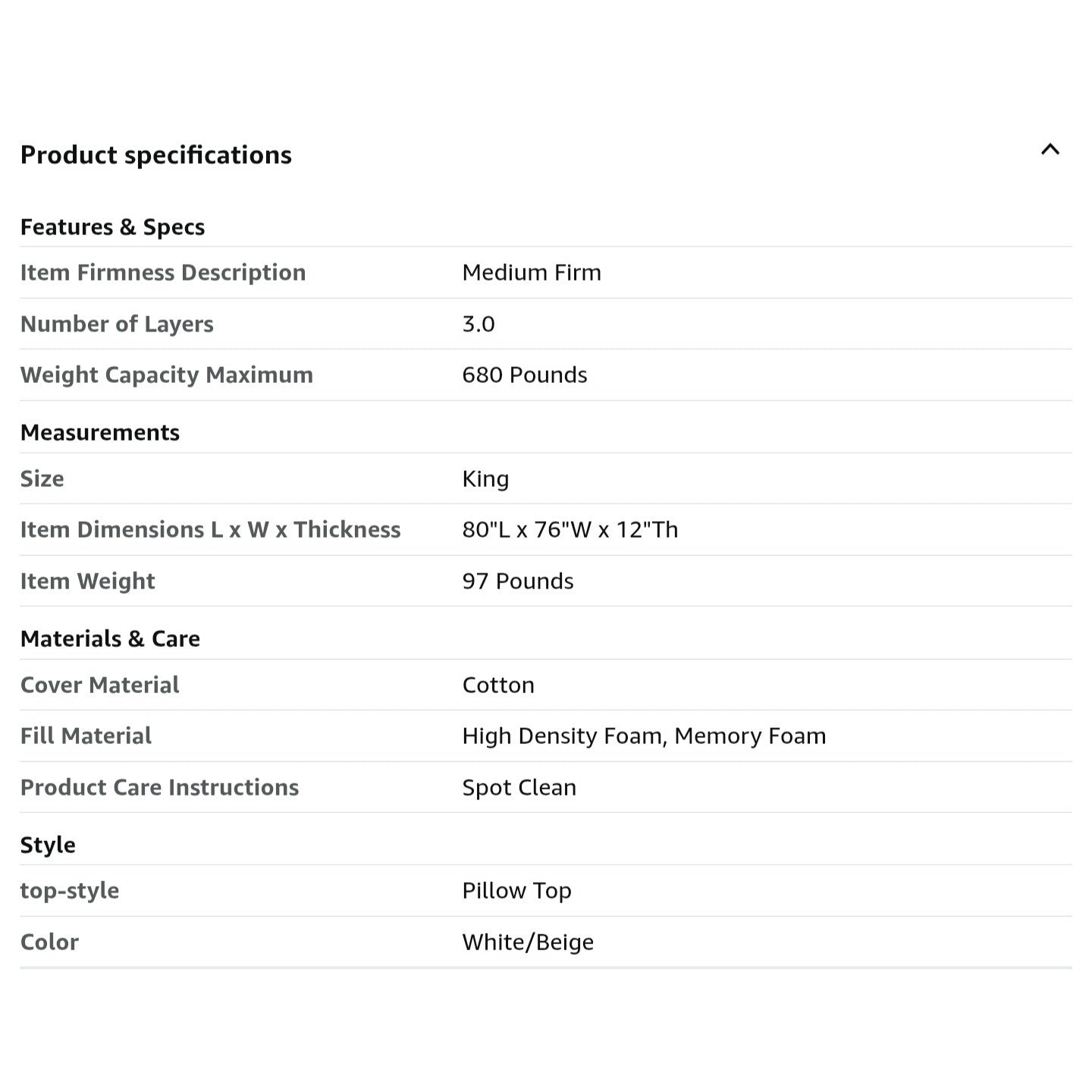 $ 190 obo King Size Mattress, 12 Inch Hybrid King Mattress in a Box, Medium Firm Mattresses with Memory Foam & Pocket Springs, Pressure Relief, Cool Fresh Sleep, Enhanced Edge support, 80" x 76"