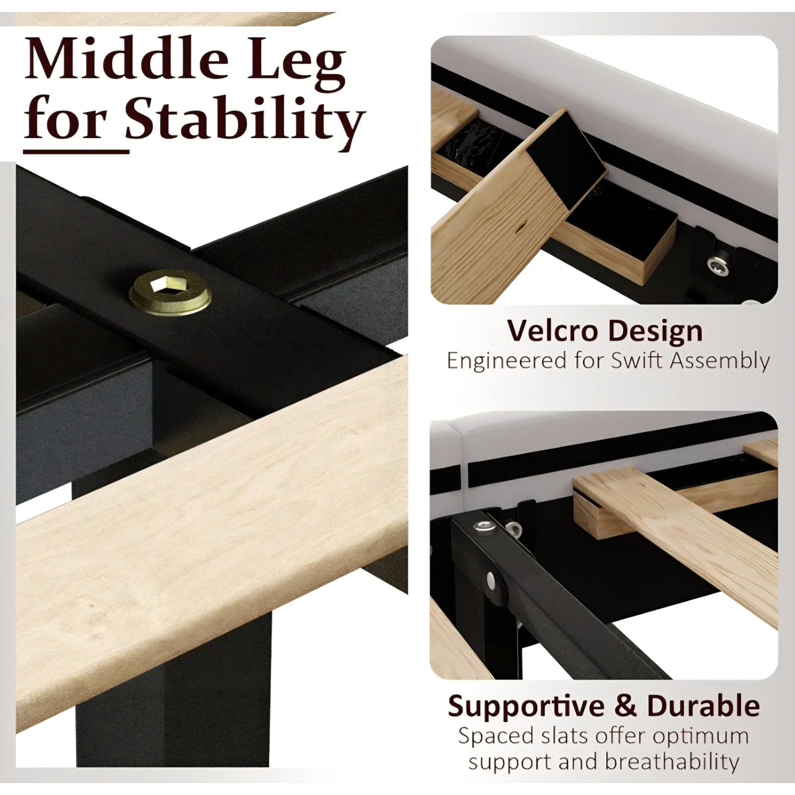 King Size Platform Bed Frame with Velvet Upholstered Headboard, Button Tufted Headboard