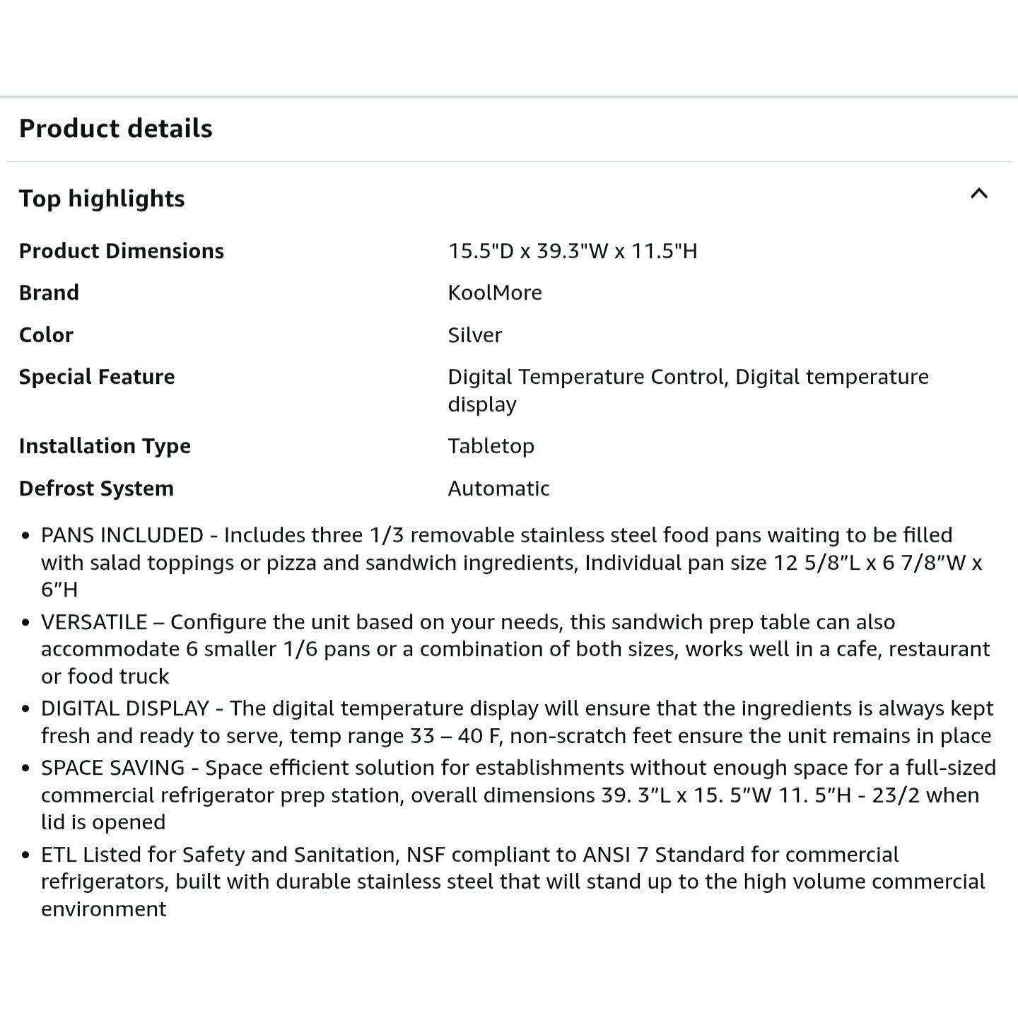 KoolMore SCDC-3P-SG Commercial-Refrigerator, 40 Inch, Silver