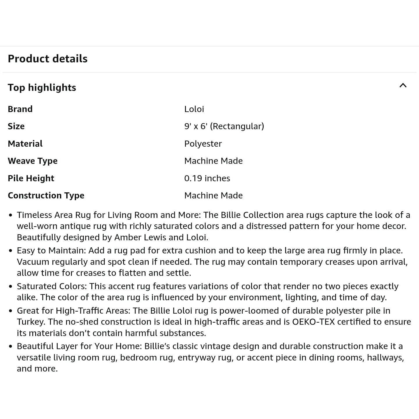 $ 110 obo Loloi Amber Lewis Billie Collection, Ink & Salmon 6'-0" x 9'-0" Area Rug – Antique & Distressed Accent Rugs for Living Room, Bedroom, Entryway & Hallway, No Shed High Traffic Area Home Decor Rug