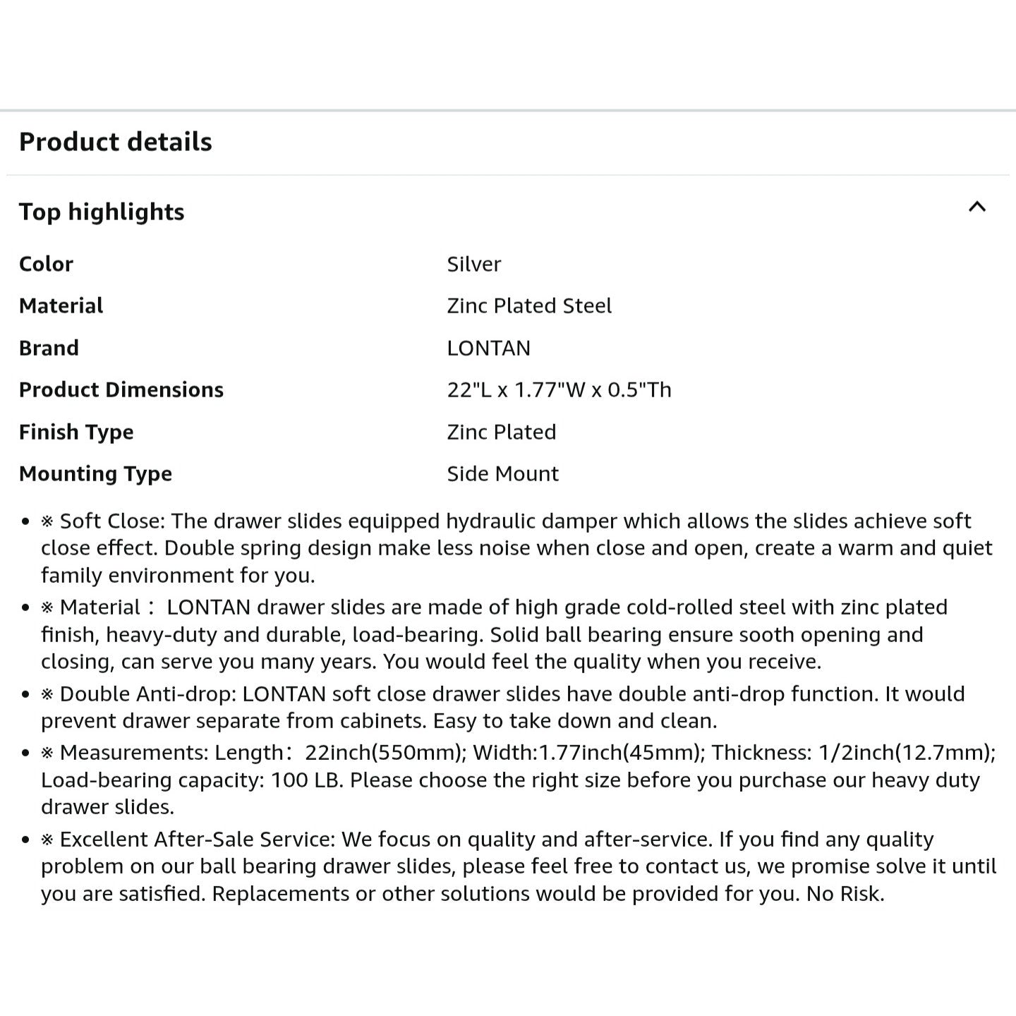 $ 170 obo LONTAN 20 Pairs 22 Inch Soft Close Drawer Slides Heavy Duty Dresser Drawer Glides Metal Ball Bearing Full Extension Kitchen Cabinet Rails 100 LB Capacity