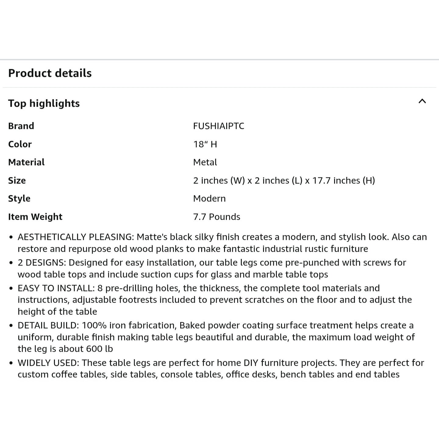 $ 45 OBO Metal Coffee Table Legs 18 Inch, Heavy Duty Bench Legs Metal Leg for End Table, Modern Desks, Night Stands