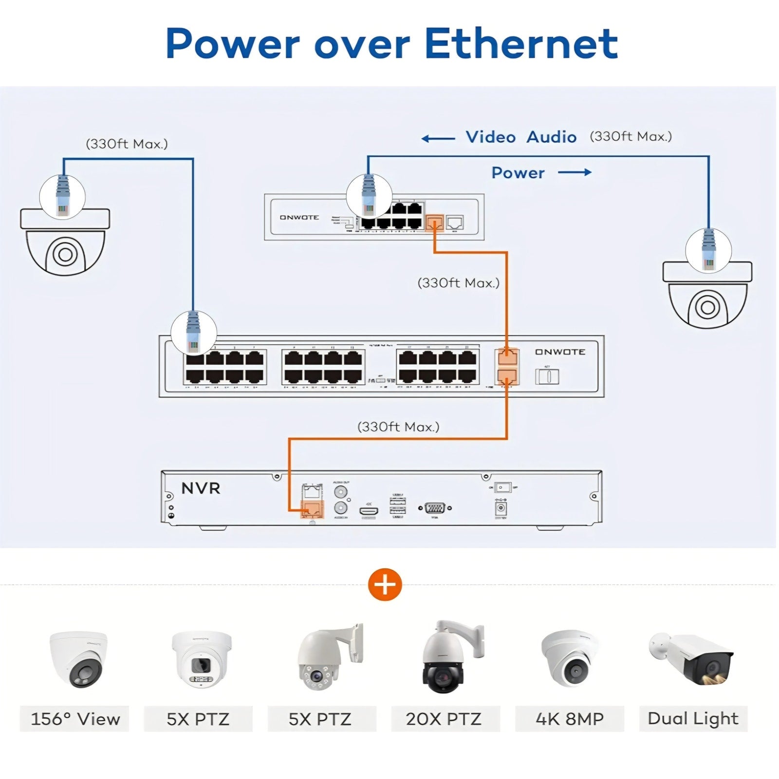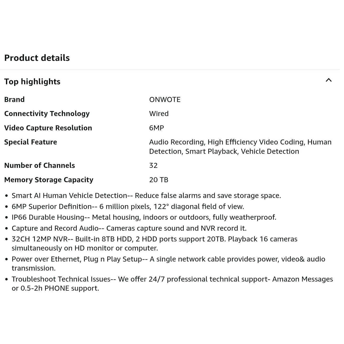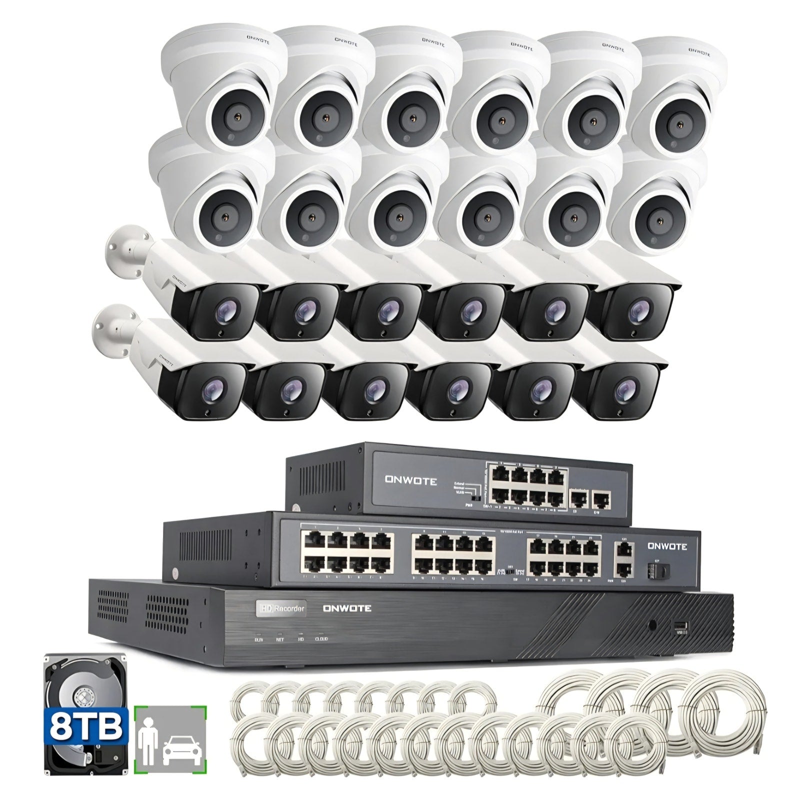 ONWOTE 32 Channel Security Camera System PoE, 12MP 32CH NVR 8TB, 32 Ports Switch, 24x 6MP Outdoor