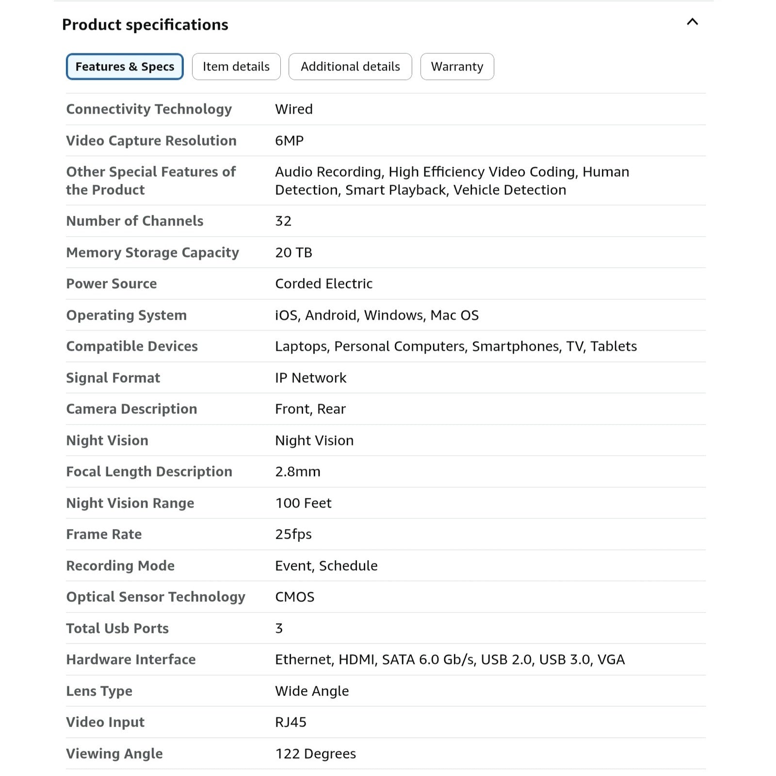$ 1,755.42ONWOTE 32 Channel Security Camera System PoE, 12MP 32CH NVR 8TB, 32 Ports Switch, 24x 6MP Outdoor Audio PoE IP Cameras, AI Human Vehicle Detection, 24x Cables-2280ft, Commercial CCTV for Business
