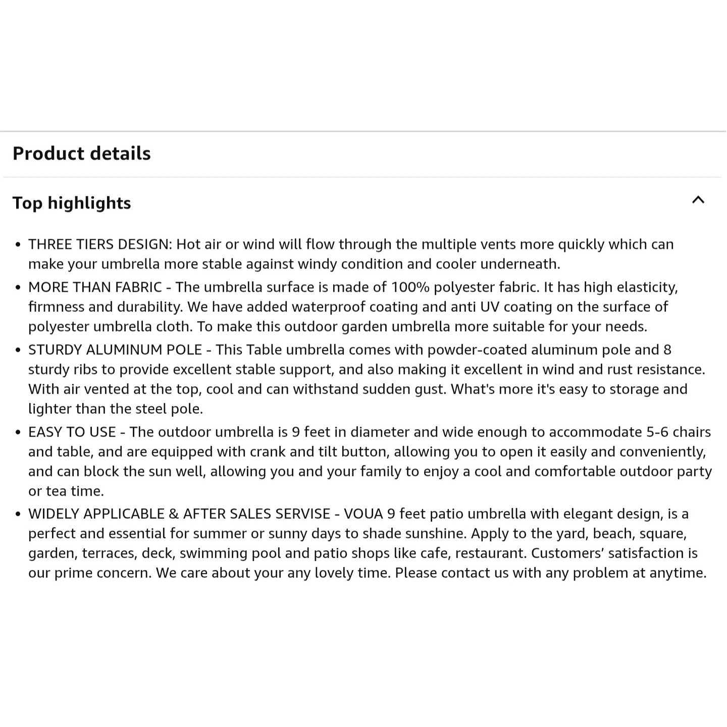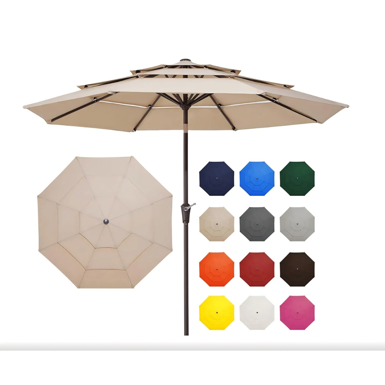 $55 OBO JEAREY 9FT 3 Tier Patio Umbrella Outdoor Market Umbrella Table Umbrellas with 8 Ribs 1.5 Pole Push Button Tilt and Crank UV Protection for Garden,Backyard,Pool,Beige