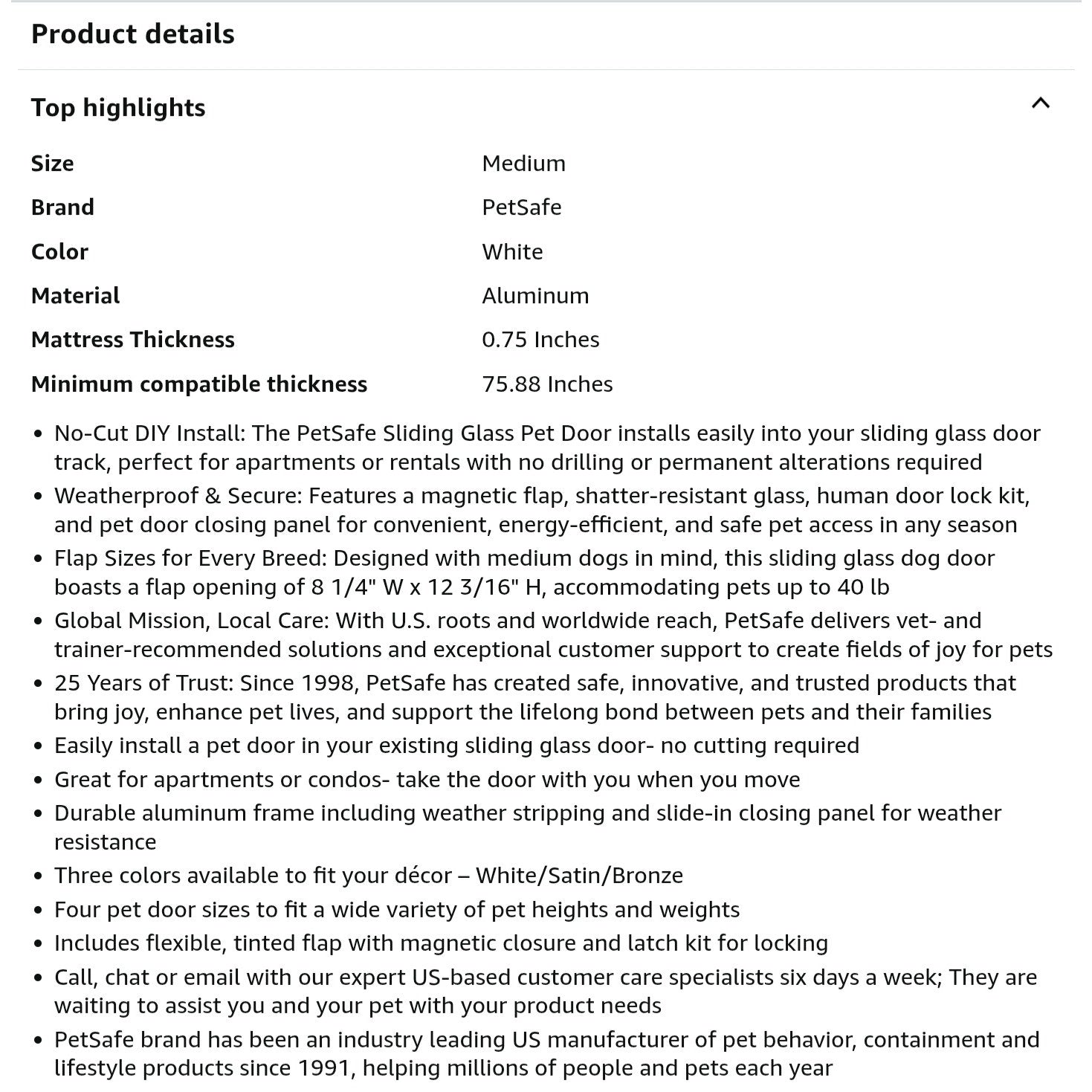 $ 120 obo PetSafe Sliding Glass Pet Door - No-Cut DIY Install Doggy Door for Renters - Aluminum Frame - Adjustable Height 75 7/8" to 81" - Ideal for Medium Dogs Up to 40 lb - White