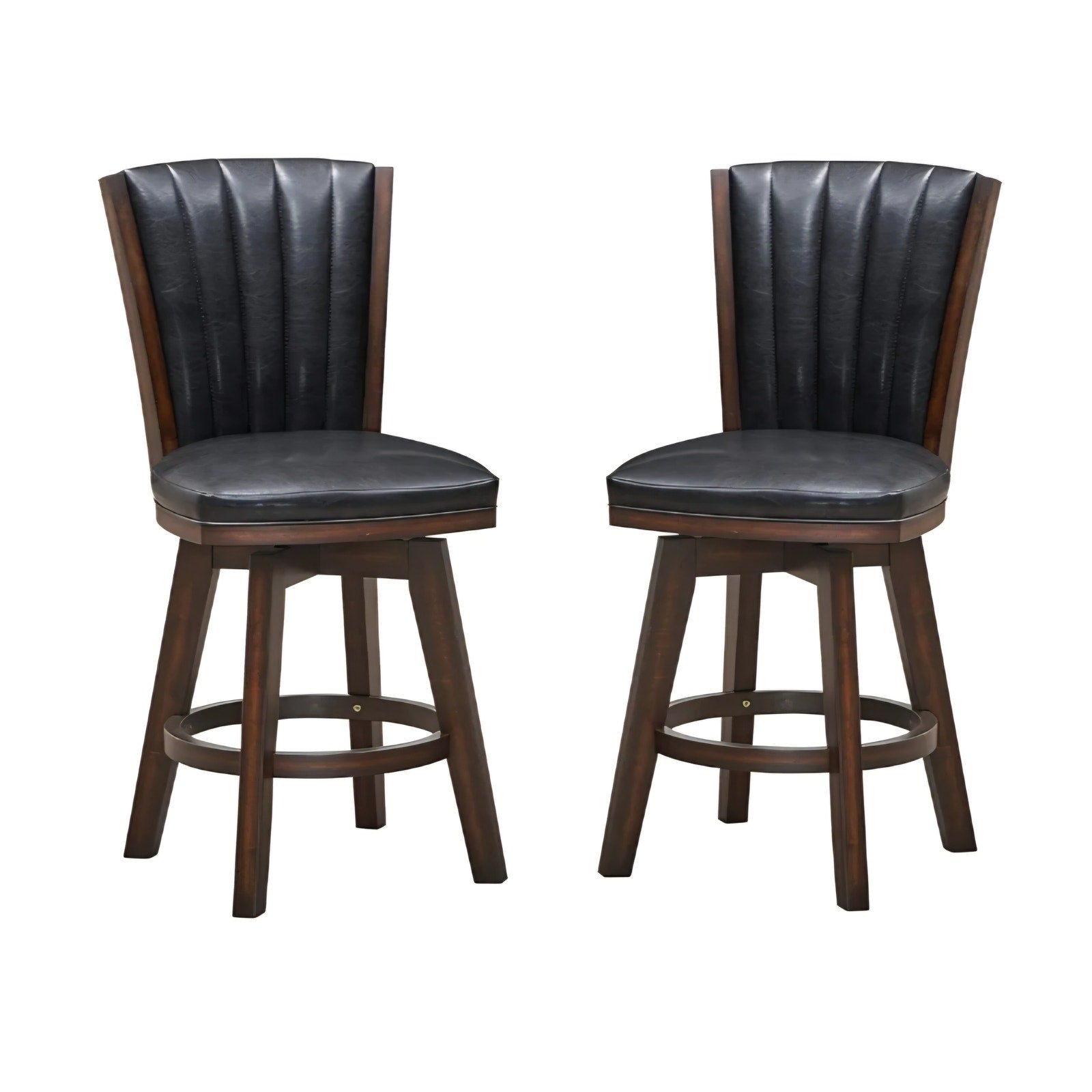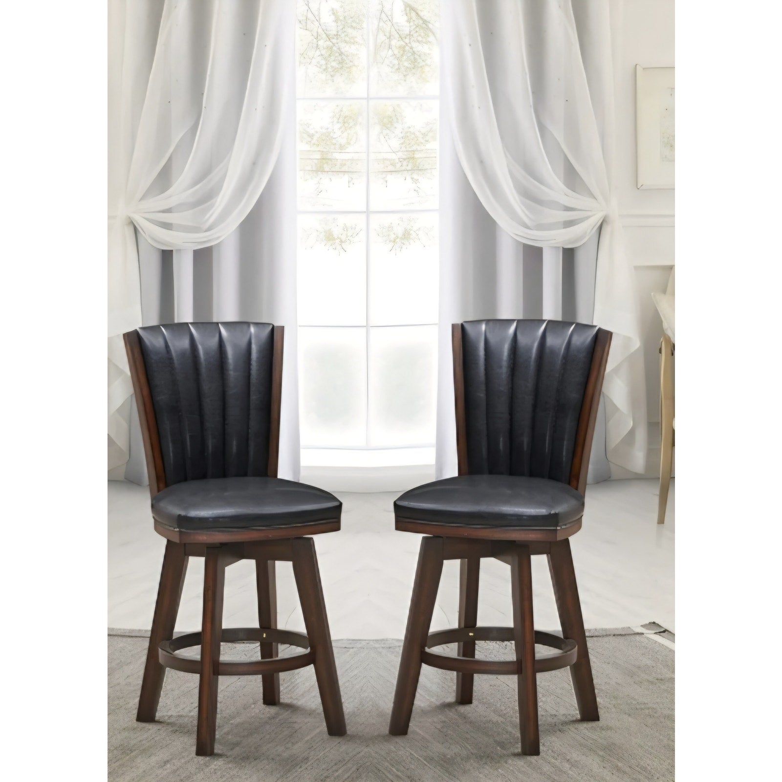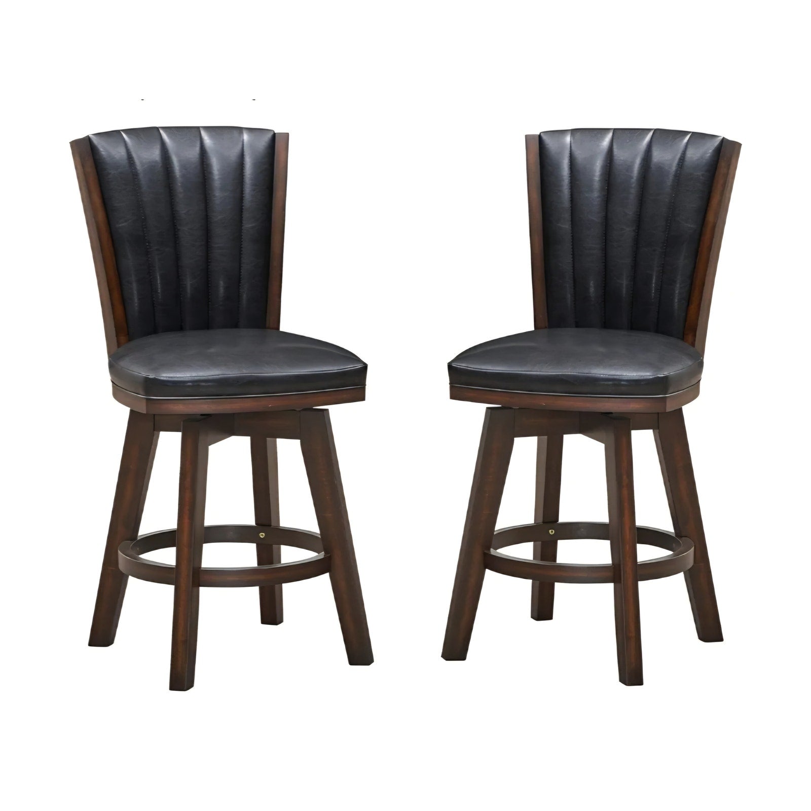 Poundex Furniture 24" Wood Swivel Counter Stool in Black Faux Leather (Set of 2)