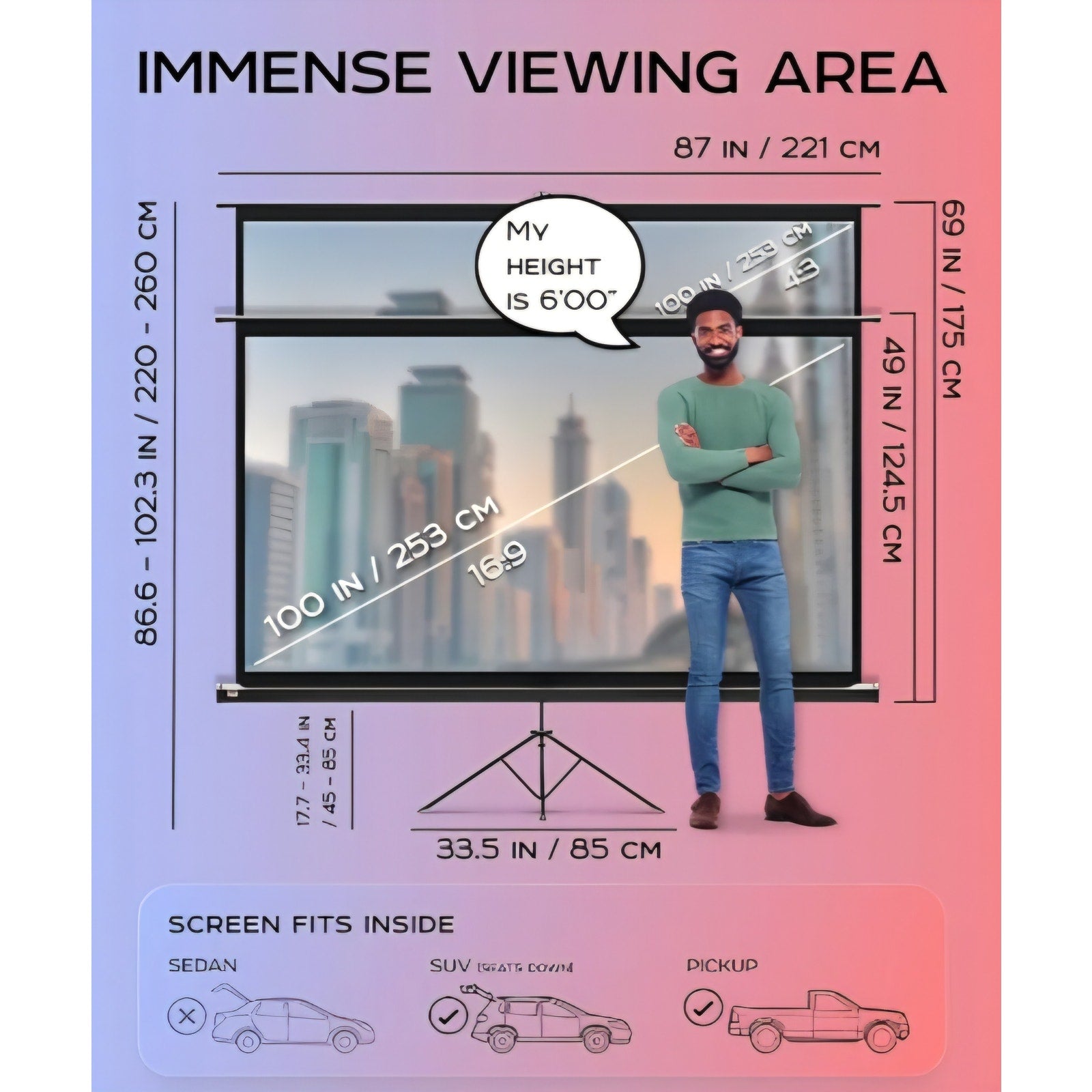 PropVue Projector Screen with Stand 100 inch - Indoor and Outdoor Projection Screen for Movie or Office