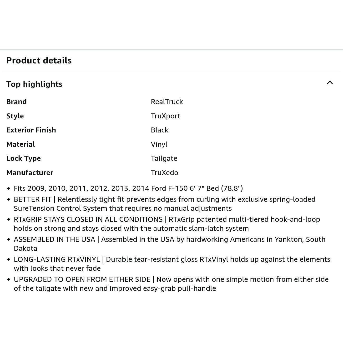 $ 245 obo RealTruck TruXedo TruXport Soft Roll Up Truck Bed Tonneau Cover | 298101 | Fits 2009 - 2014 Ford F-150 6' 7" Bed (78.8")
