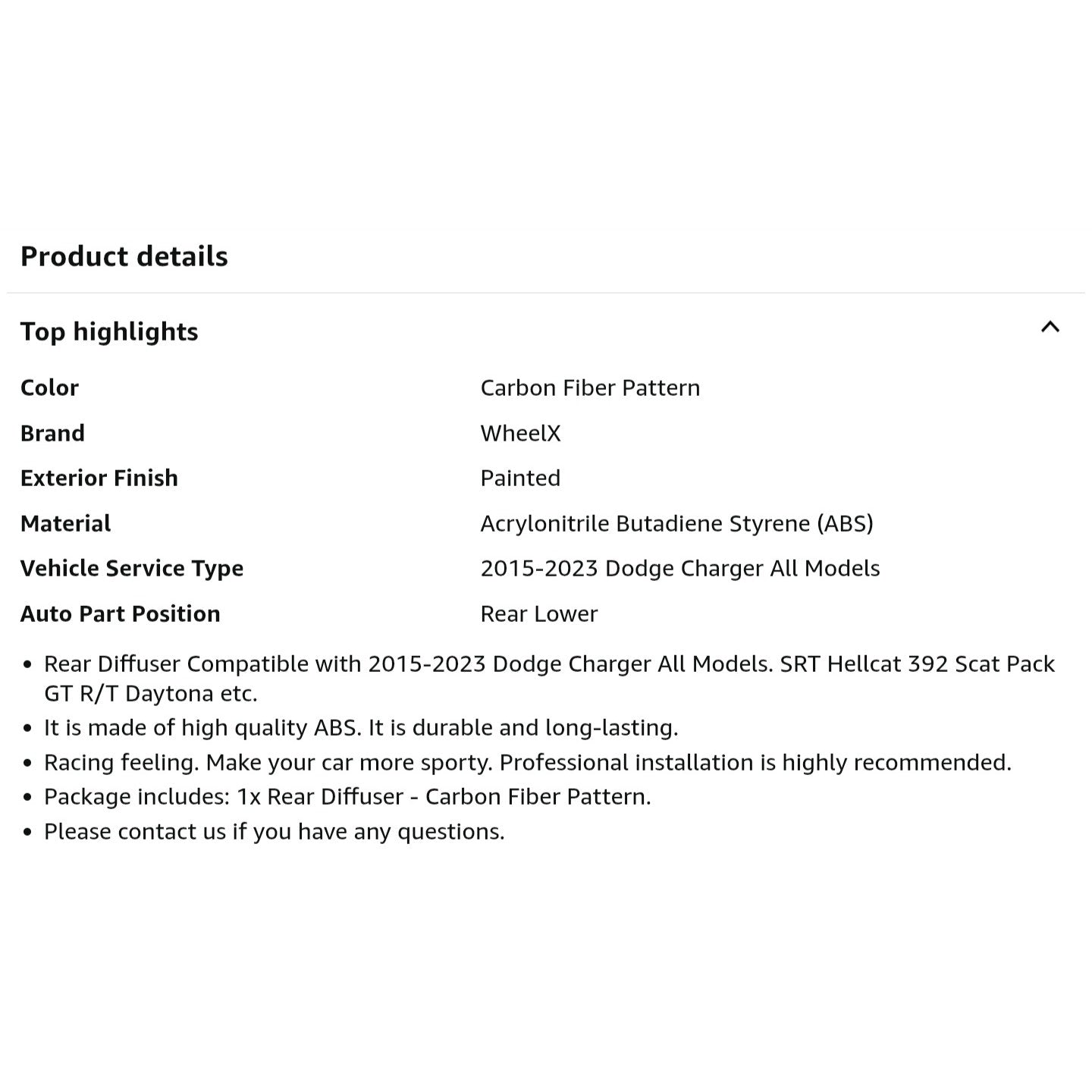 $ 90 obo Rear Diffuser Compatible with 2015-2023 Dodge Charger, Rear Bumper Lip Splitter Fit for SRT Hellcat Scat Pack 392 GT R/T Daytona (Carbon Fiber Pattern)