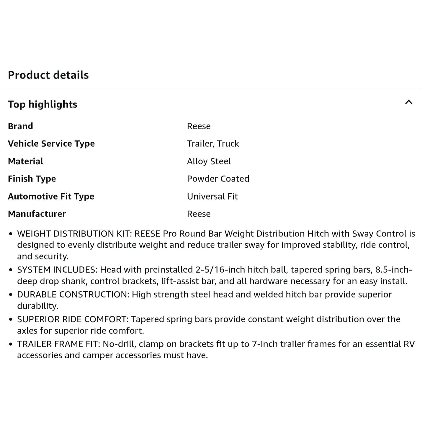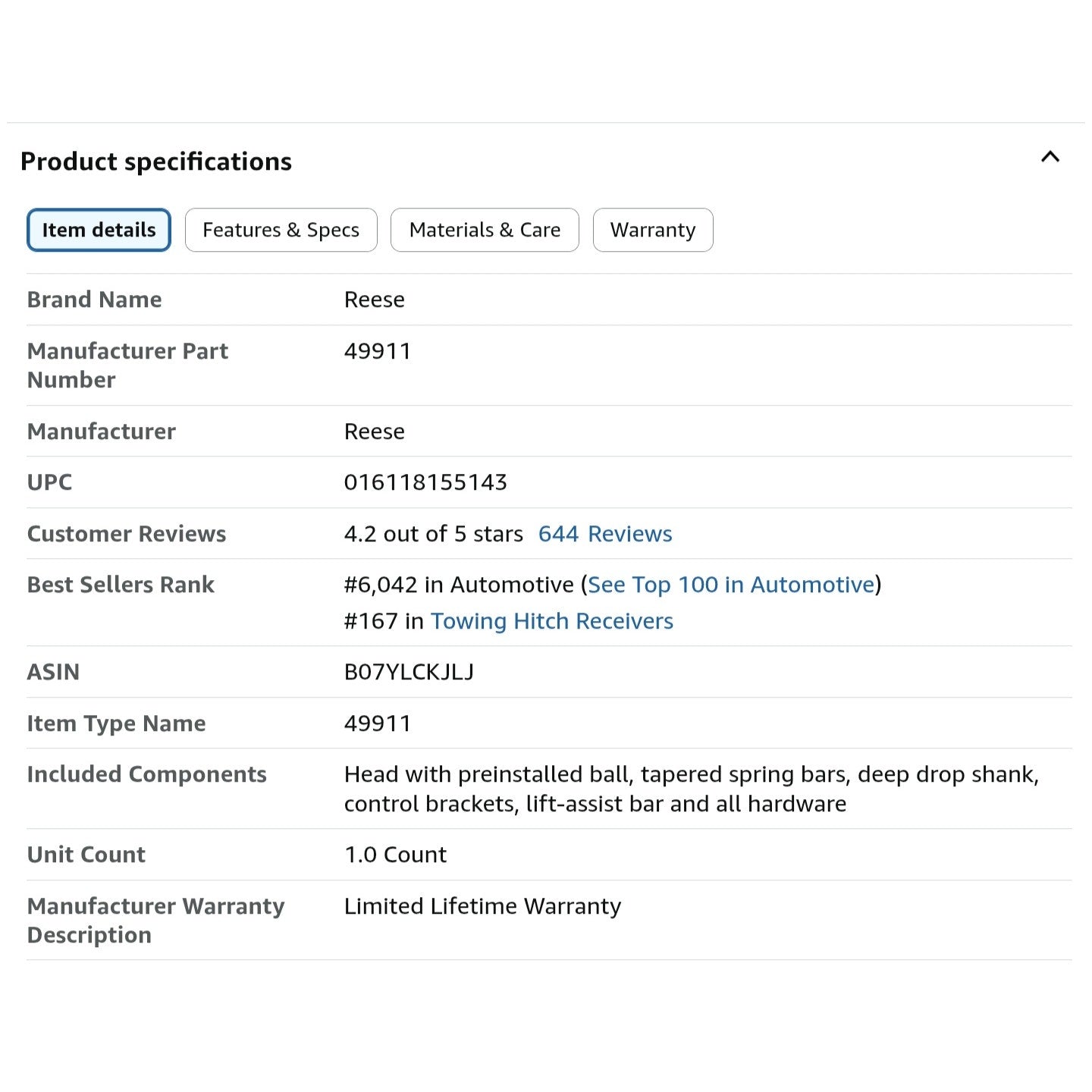 $ 190 obo REESE 49911 Integrated Sway Control Weight Distribution Kit, 6,000 lbs. Capacity, Shank Included